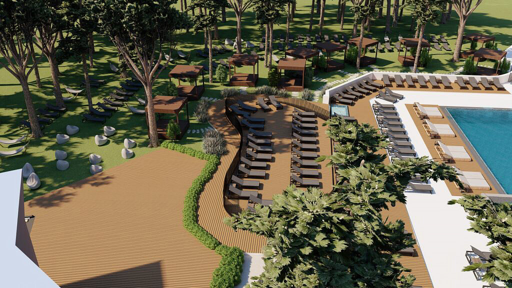 vnitřní bazén s mořskou vodu, 2x venkovní bazén s mořskou vodu, lehátka a slunečníky u bazénu, osušky k bazénu zdarma (kauce), postel s nebesy u bazénu*, wellness centrum Ellissian*: vnitřní Whirlpool*, sauna*, masáže*, fitness, tenisové kurty*, stolní tenis*, minigolf*, plážový volejbal*, hřiště pro míčové hry*, animace, vodní sporty*, jezdecké centrum*, půjčovna a úschovna jízdních kol*, program pro dospělé, fitness, workshopy, cvičení, ochutnávky atd. (v hlavní sezóně), přístup k moři přizpůsobený pro osoby se zdravotním postižením, turistický vláček* (každých 30 min.) do města Umag