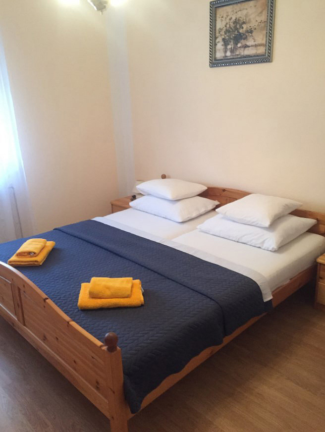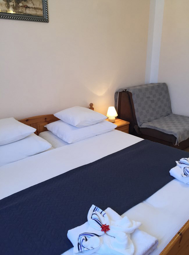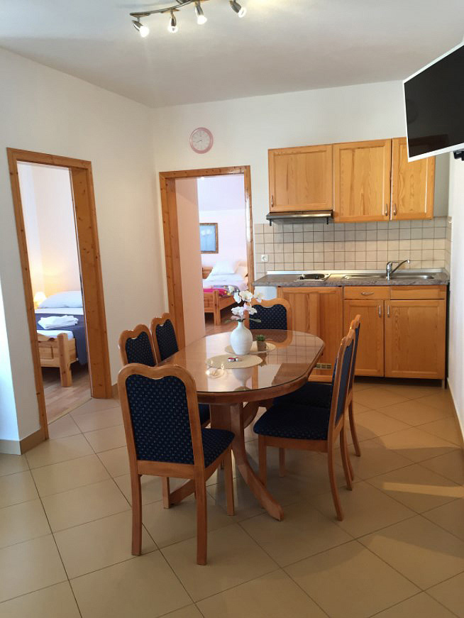 dvě samostatné ložnice s manželskou postelí a obývací pokoj s možností až 2 přistýlek pro děti do 12 let, kuchyňský kout, sociální zařízení, terasa
