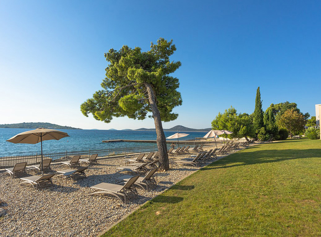 Vodice, centrum - cca 1 km, pláž / betonová plata, oblázkovo-kamenitá - 80 m, oblázkovo-písečná - 100 m