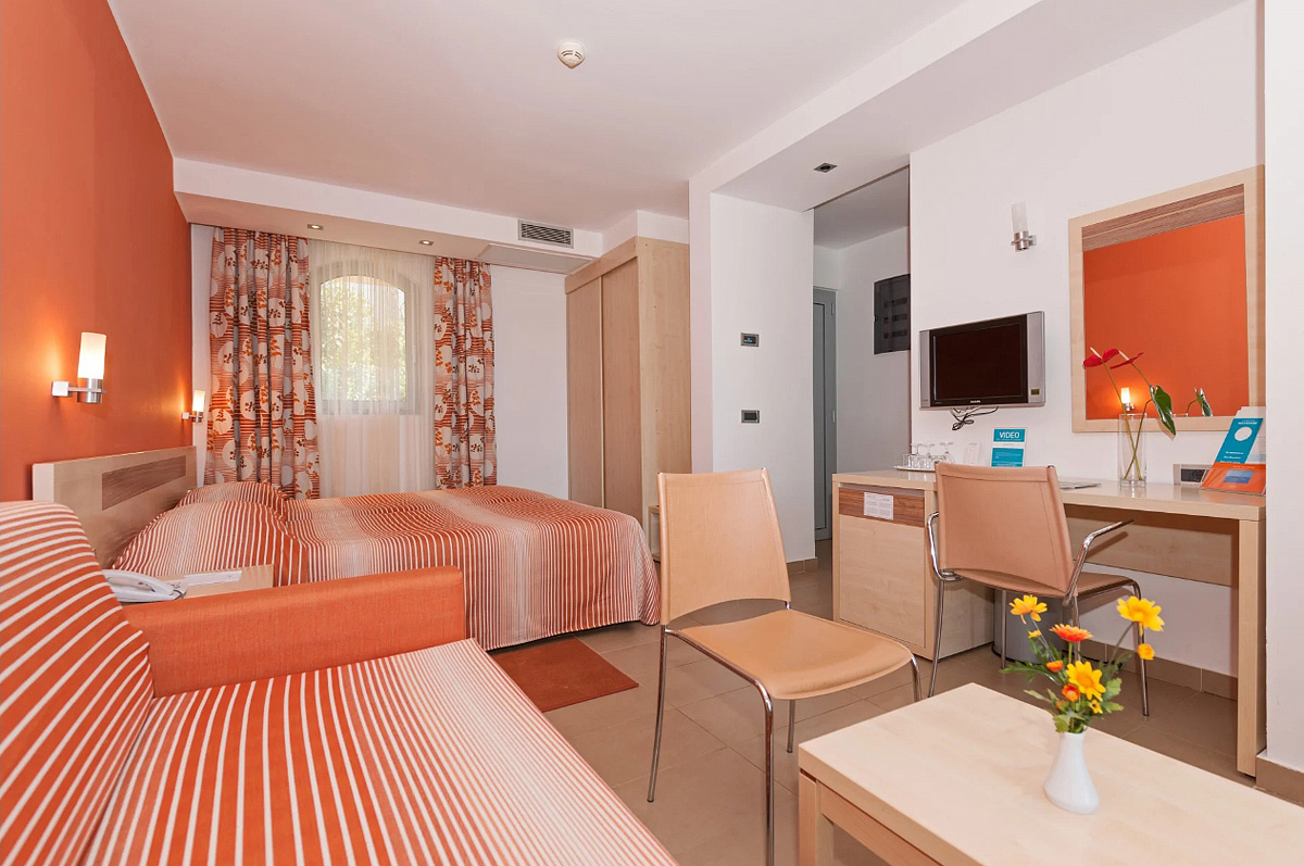 cca 21 až 29 m² - pokoj s oddělenými lůžky a přistýlkou formou rozkládacího křesla, sociální zařízení se spchou či vanou, balkon