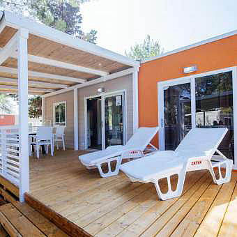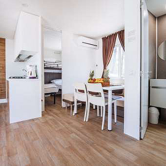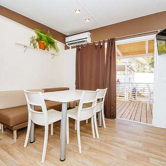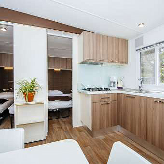 klimatizace, TV sat., wi-fi připojení k internetu, lednička, kávovar, rychlovarná konvice, mikrovlnka, plynový sporák, Mobile home Deluxe 4+1 (indukční varná deska, myčka)
