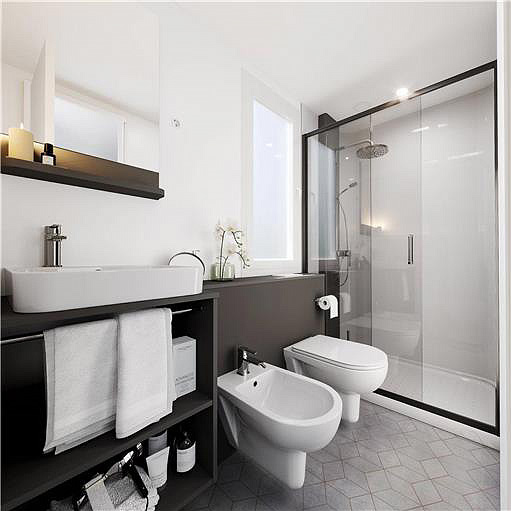 cca 34 m² - 1 ložnice s manželskou postelí, 2 ložnice se 2 samostatnými lůžky, obývací pokoj s kuchyňským koutem a rozkládací pohovkou pro 1 dítě do nedovršených 18 let, 2x sociální zařízení se sprchou, terasa