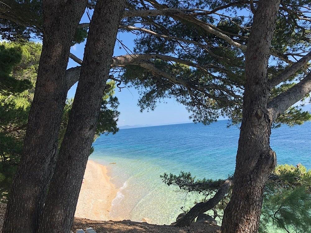 Živogošće - Mala Duba, centrum - 1 km, pláž / oblázková s drobnými kamínky a velmi mírným vstupem do moře - 80 m