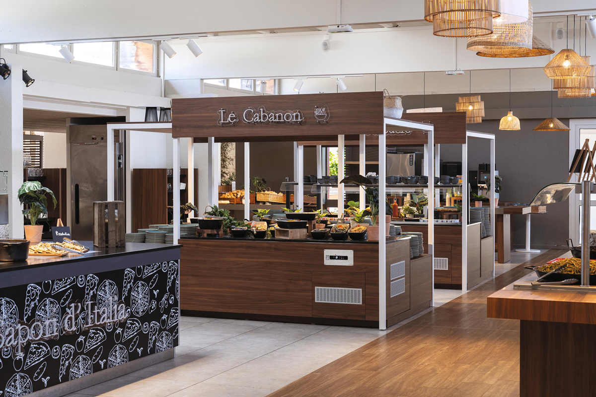 formou bufetu studených předkrmů a polévek, 3 až 4 hlavních jídel, příloh, salátů, dezertů a sýrů, voda a víno v ceně; nabídka i pro malé děti