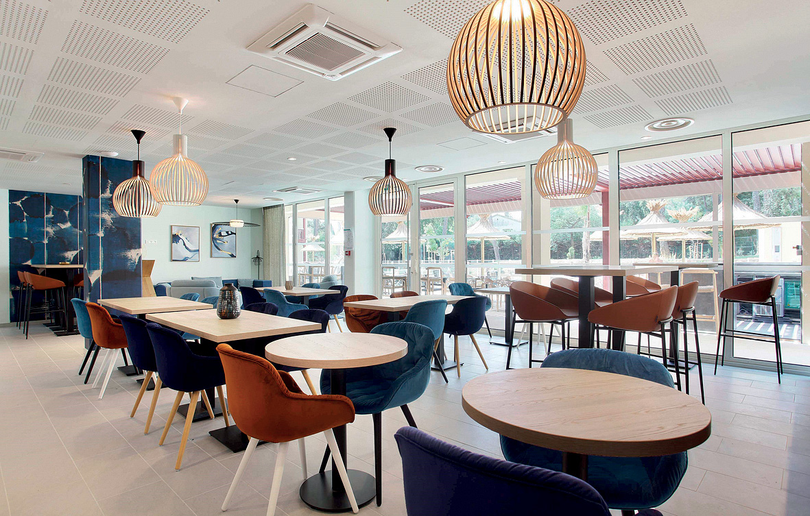 recepce / lobby / výtah, jídelna pro snídaně s terasou a barem, seminární místnost, garáže (1 místo / apartmán), vyhrazené parkoviště