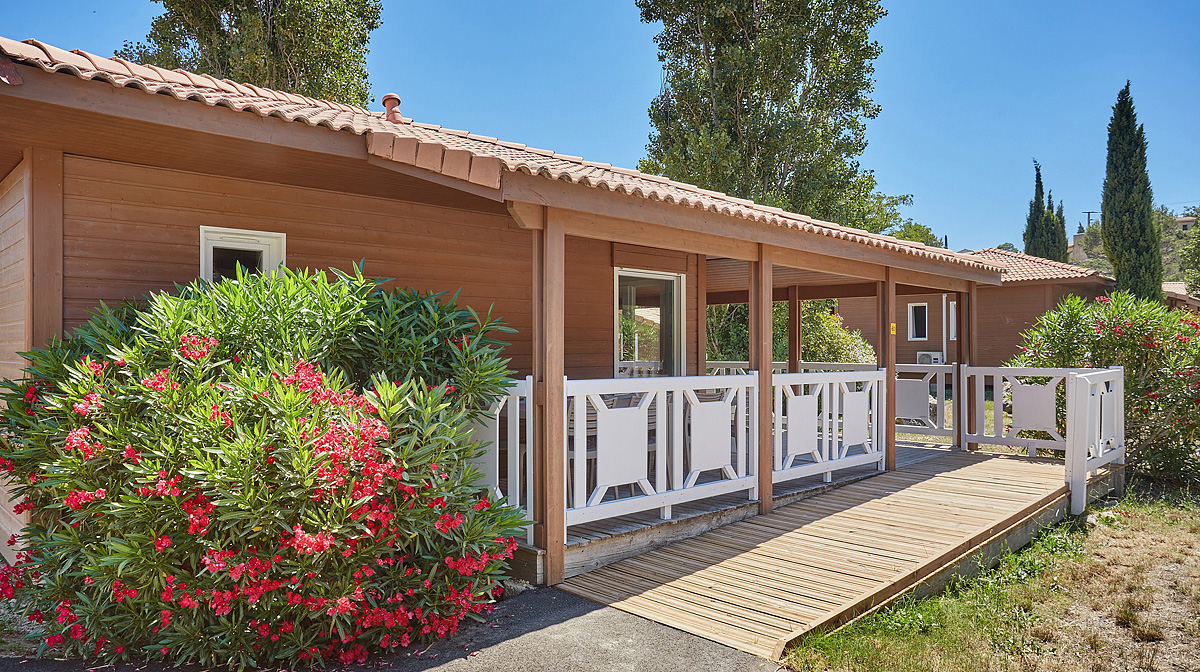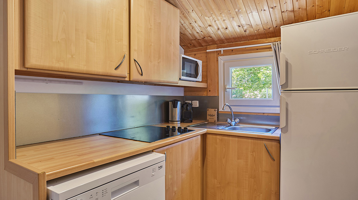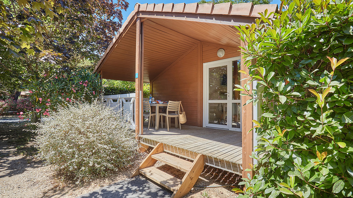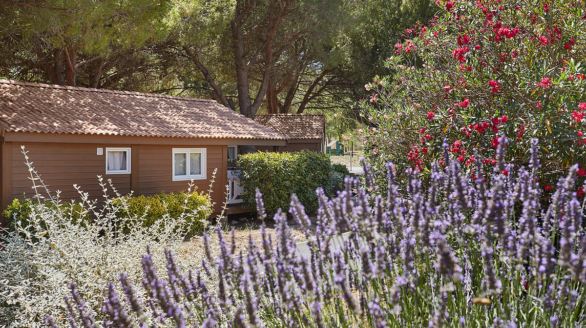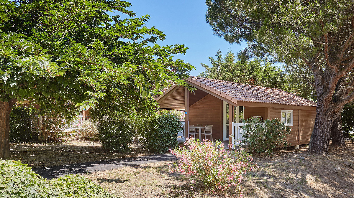 Areál ve stínu vzrostlých stromů, pohodlné klimatizované chalety s krytou terasou, mnoho turistických stezek v okolí.