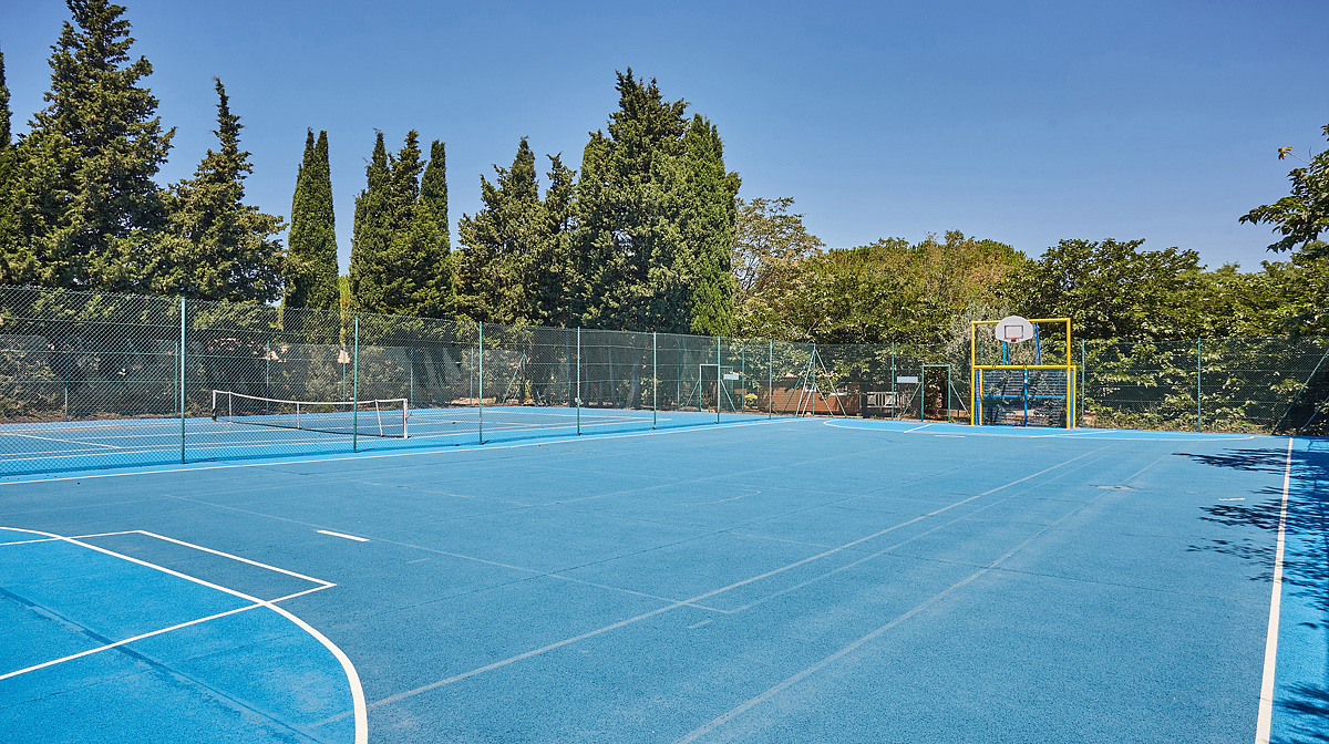 vyhřívaný venkovní bazén s lehátky (19.4. – 27.9.), multifunkční sportovní hřiště, venkovní tenisové kurty