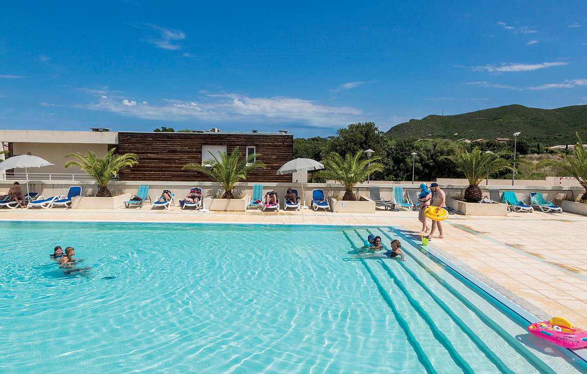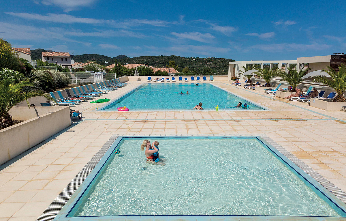 venkovní bazén 22 x 10 m s lehátky, venkovní dětský bazének 5 x 5 m, minigolf, multifunkční sportovní hřiště, venkovní dráha pro petanque