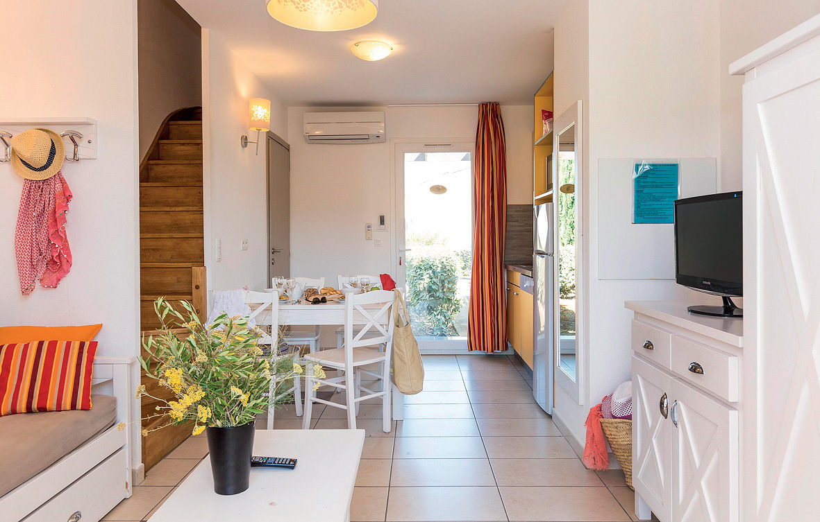 33 m² - 1 ložnice s manželskou postelí, obývací pokoj s kuchyňským koutem a rozkládacím gaučem pro 2 osoby (možno i typ "šuplík"), sociální zařízení s vanou, terasa s posezením