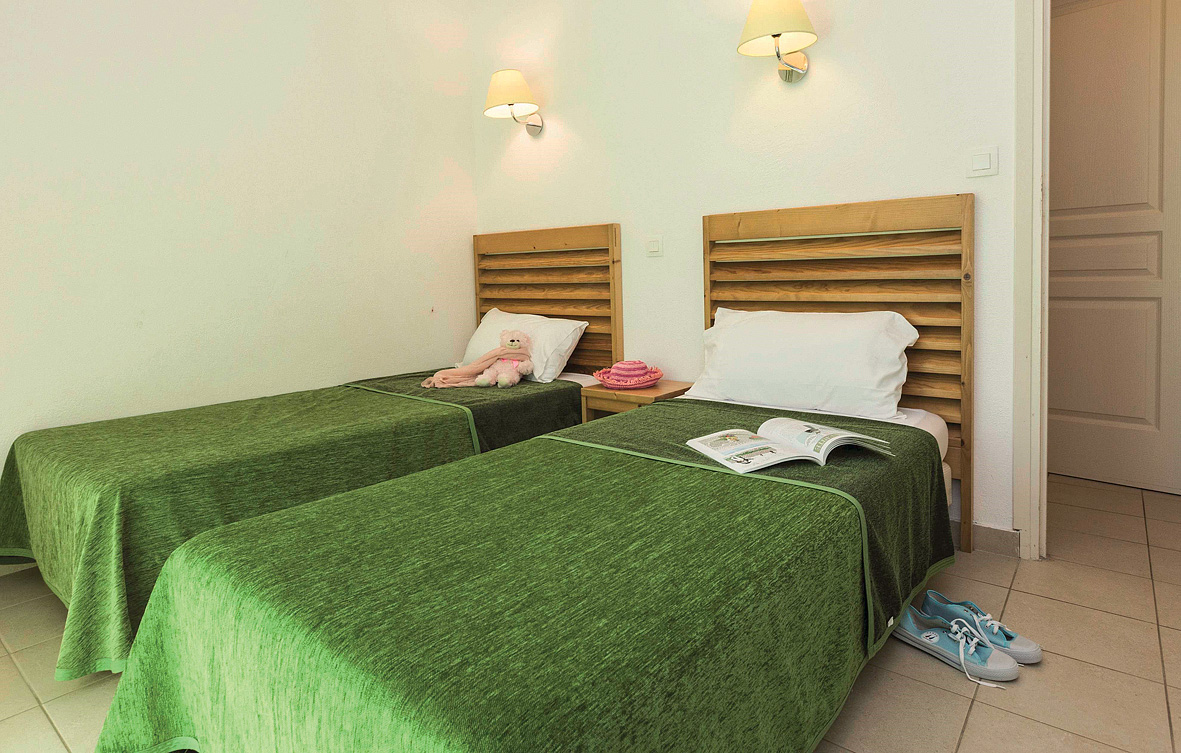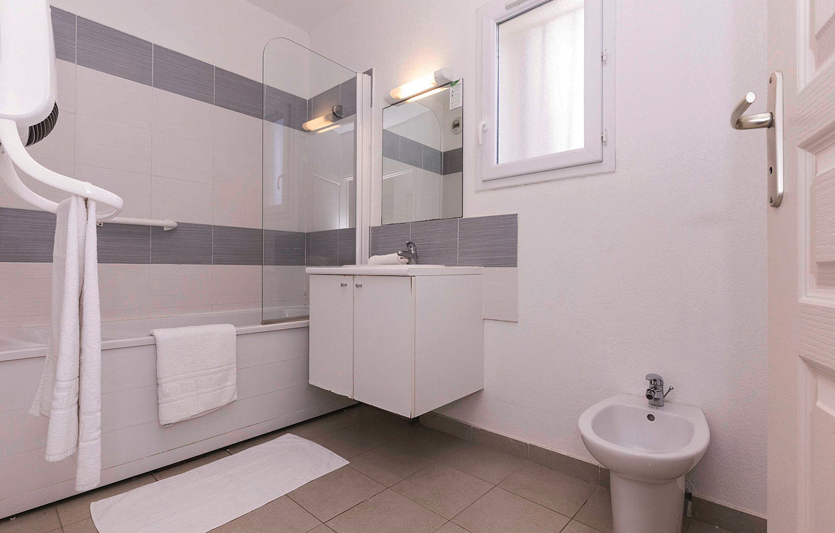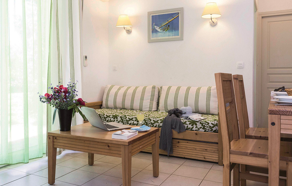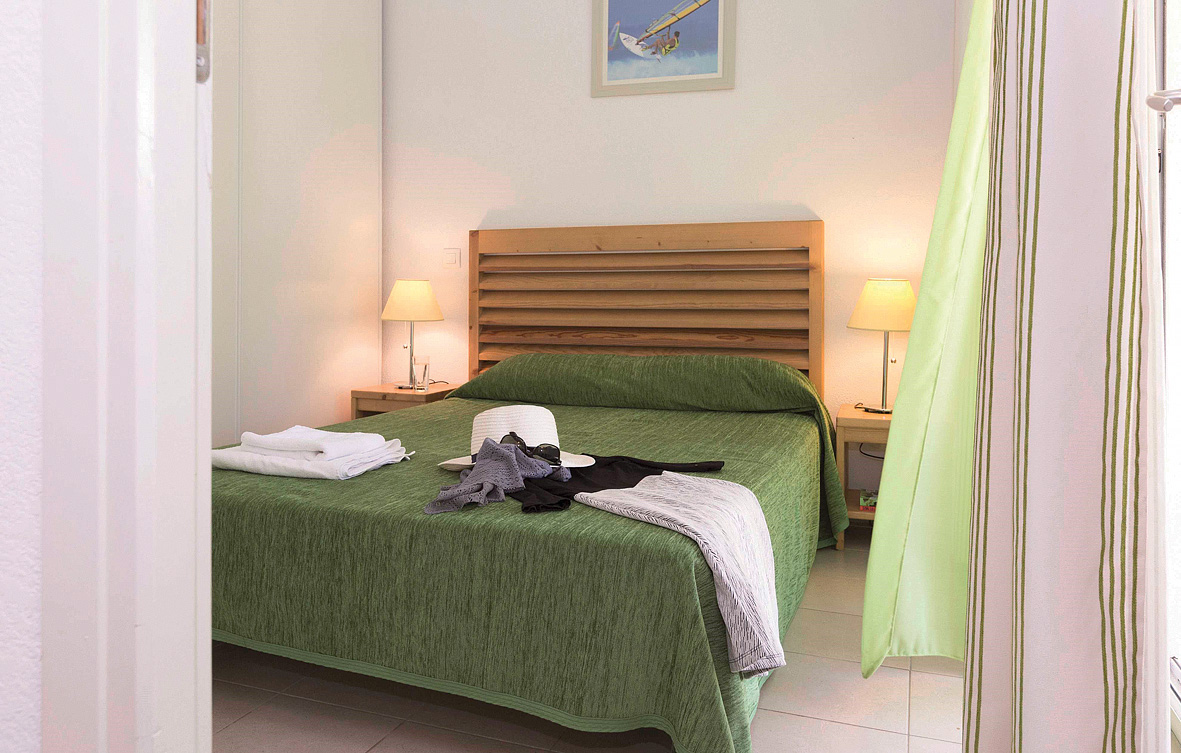 31 až 34 m² - 1 ložnice s manželskou postelí, obývací pokoj s kuchyňským koutem a rozkládacím gaučem typu „šuplík“ pro 2 osoby, sociální zařízení s vanou či sprchou, terasa; některé apartmány jsou dvoupodlažní