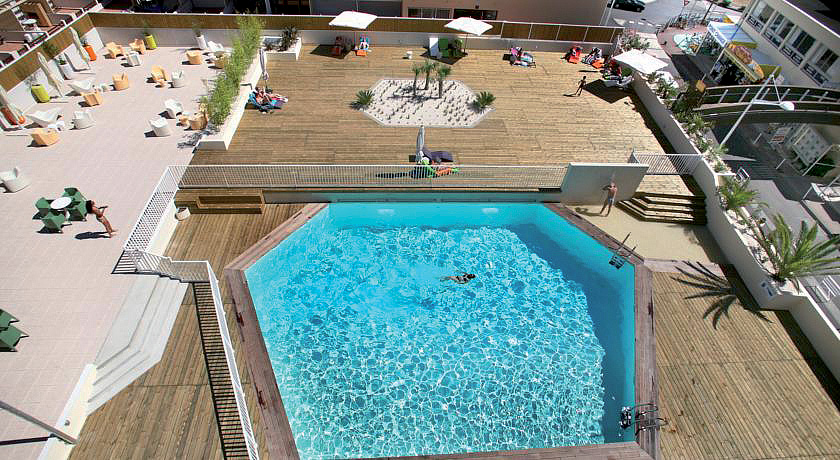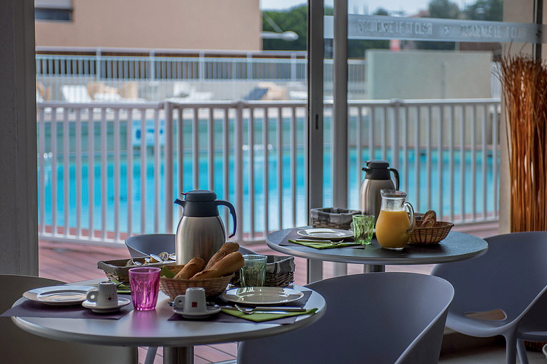 residence poblíž centra letoviska s apartmány situovanými k bazénu, přístavu či na parkoviště