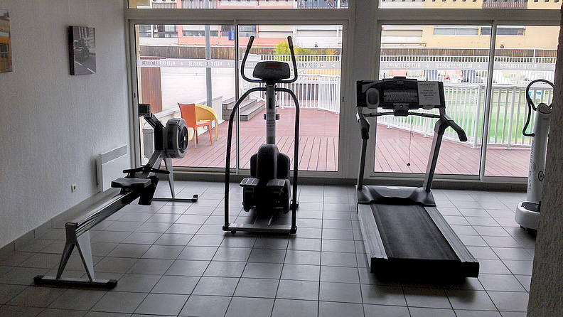venkovní bazén 10 x 8 m s lehátky, menší posilovna