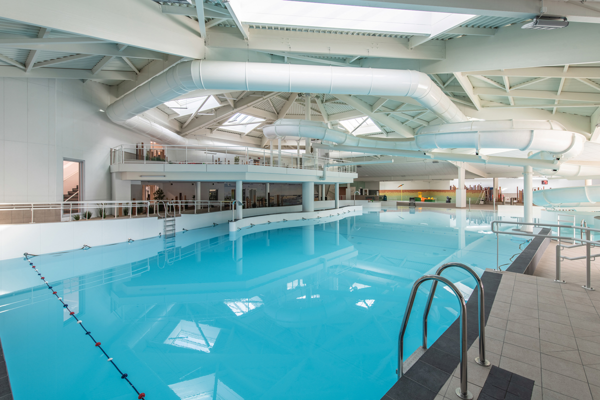 vnitřní bazén s vlnami, toboganem a brouzdalištěm (celoročně), venkovní bazén s tobogany a vířivkou (červenec–srpen), plavecký bazén 25 m*, sauna*, hammam*, posilovna*; minigolf, tenis, stolní tenis, padel*