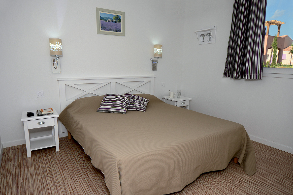 30 m² - ložnice s manželskou postelí, obývací pokoj s kuchyňským koutem a rozkládacím gaučem pro 2 osoby (možno i typ "šuplík"), sociální zařízení se sprchou či vanou, terasa