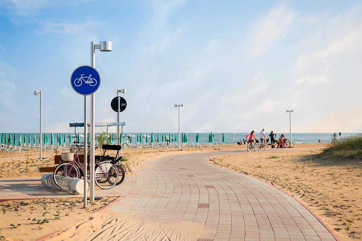 O pár řádek výše jsme zmínili zkvalitňující se infrastrukturu. Ta je zde dnes tak široká, že obdobných letovisek je v tomto ohledu opravdu hodně poskrovnu. Nesčetné obchody včetně značkových butiků, široký výběr restaurací s typickou italskou i mezinárodní kuchyní, bary, herny, diskotéky, široké sportovní zázemí, ale především bujarý večerní život s hlavní promenádou měnící se každodenně v korzující lidské mraveniště, to je ten typický obrázek letního Bibione. Nikdo z rekreantů si zpravidla nenechá ujít ani tradiční velké trhy konané každé úterý či návštěvu velkého a hlavně celosezónně otevřeného lunaparku. To také již napovídá, že Bibione je ideálním místem pro děti. Jemný písek a pozvolný vstup do vody uchrání každého před starostmi o své ratolesti přes den a nepřeberné množství hřišť, dětských heren i další zábavy zase nabídne dokonalé rozptýlení na večer. Pláže jsou v Bibione až neskutečně dlouhé a široké, především v centrální části však téměř výhradně soukromé. Tento zdánlivý handicap v podobě omezeného počtu volných pláží je však kompenzován skutečností, v jiných částech Itálie nemyslitelnou, že ležení před či za řadami vyhrazených slunečníků je zdarma. Dalšími argumenty, hovořícími ve prospěch Bibione, je prostředí plné zeleně a ojediněle atraktivní kolonáda oddělující pláž od centra městečka. Nezapomeňme ale ani na vyznavače kolečkových bruslí a cykloturistiky, pro které je toto letovisko bez přehánění učiněným rájem na zemi. Vždyť kde jinde najdeme tolik kilometrů dokonale upravených tras táhnoucích se po rovině podél lagun, do vnitrozemí či podél moře až do sousedního Lignana. Romanticky založené jedince a odpůrce lidmi se hemžících pláží jistě budou lákat i procházky k nedalekému majáku či slunění se v okrajových a téměř liduprázdných částech letoviska.
