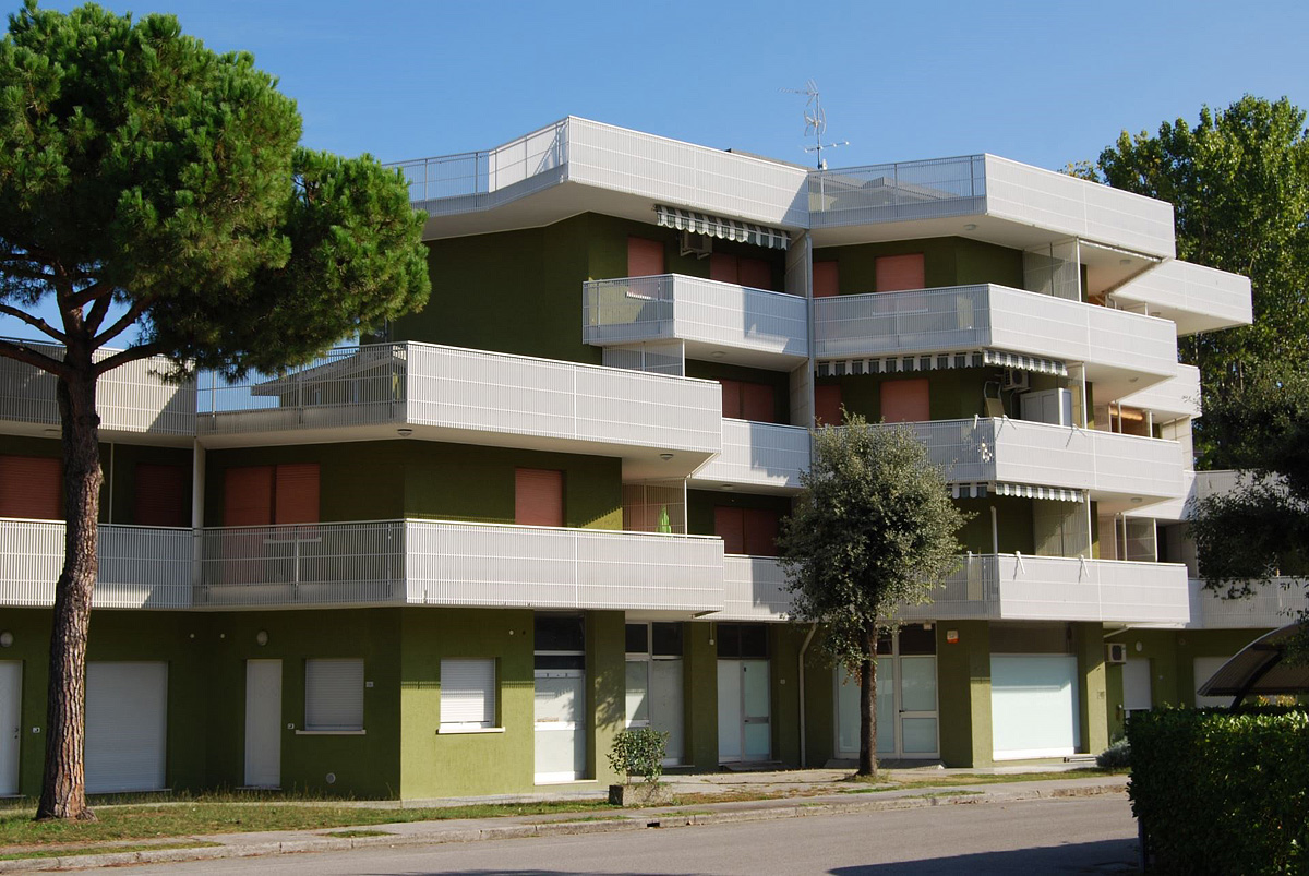 téměř identické apartmánové domy (Oasi, Simma, City, Reno, Prisma, …) v těsném okolí Piazza Po a City