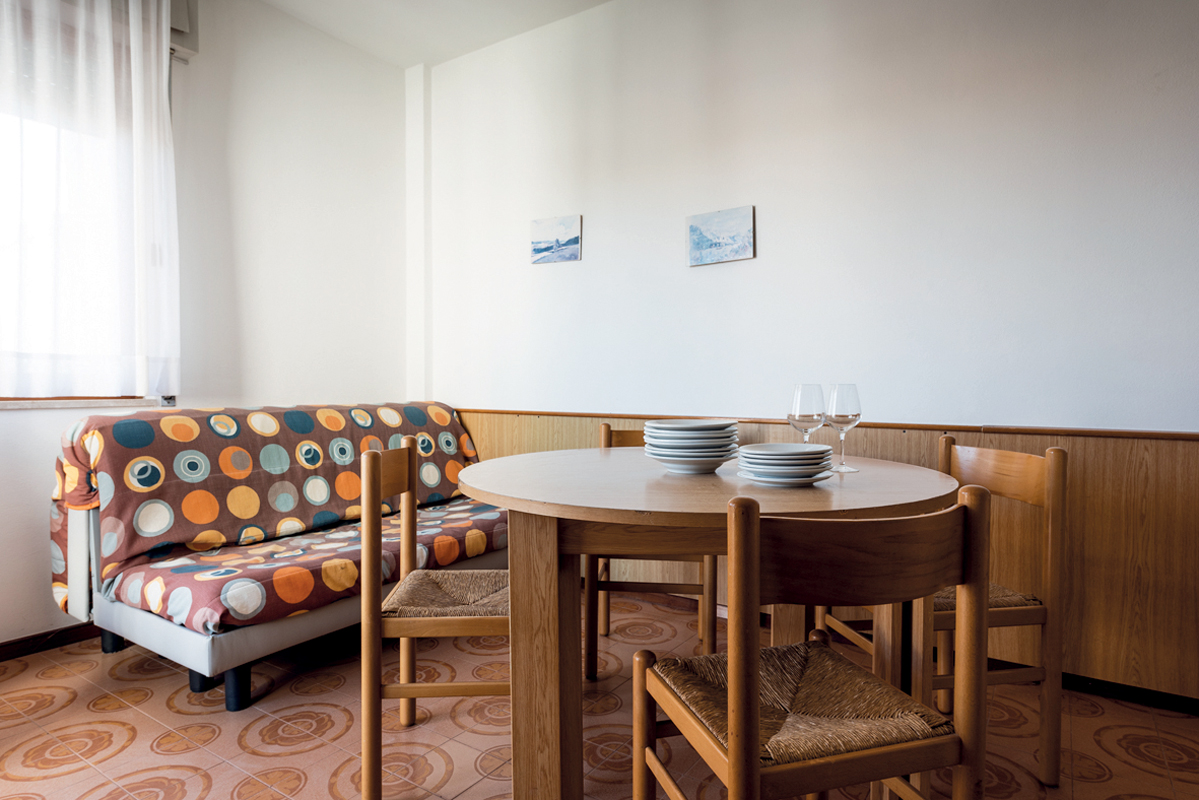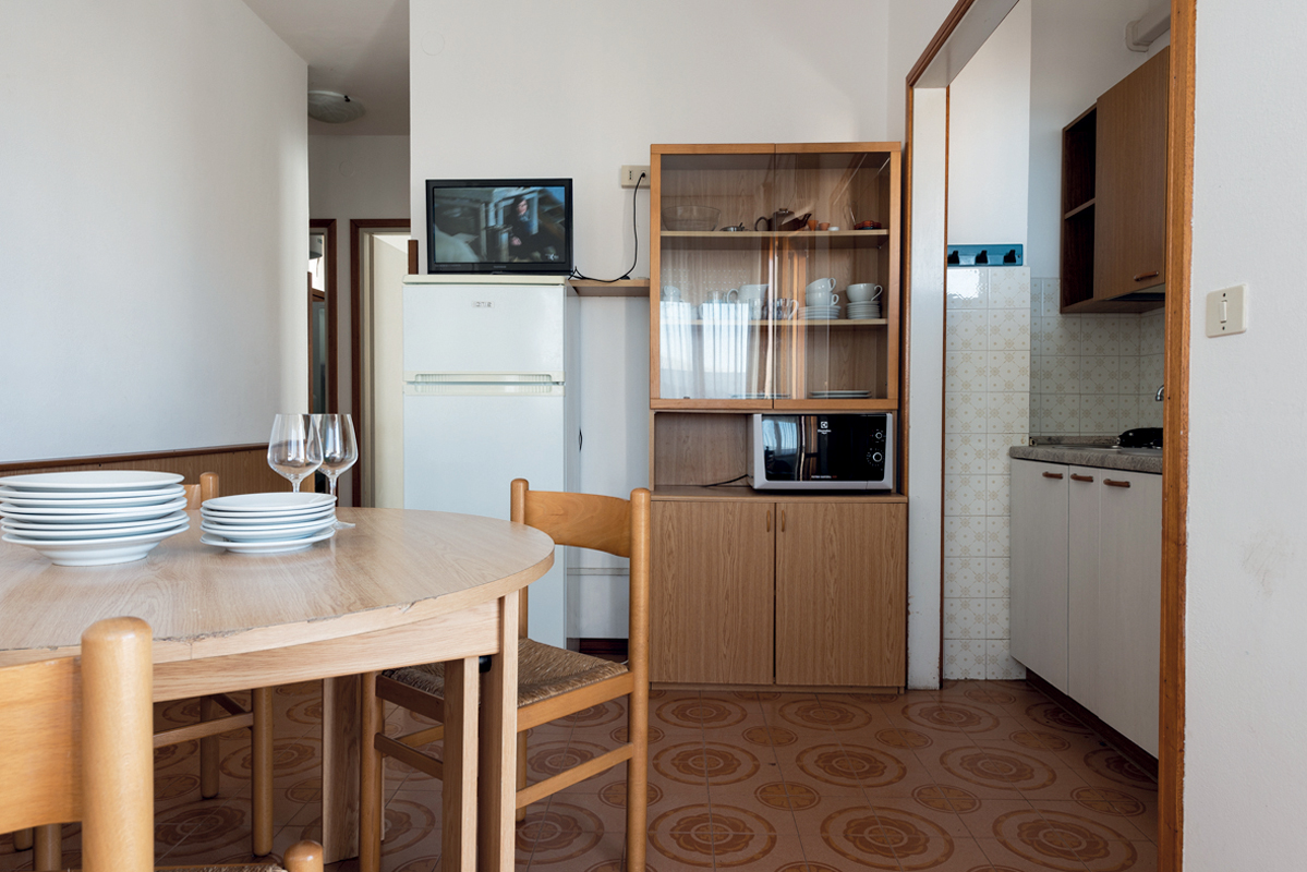 45 až 50 m² - 1 ložnice s manželskou postelí, 1 ložnice se 2 samostatnými lůžky, obývací pokoj s kuchyňským koutem a rozkládacím gaučem (možno i typ „šuplík“) pro 1 či 2 osoby, sociální zařízení se sprchou, balkon (u vilky možnost předzahrádky); typ trilo 6+ / trilo 6++ s výhledem na moře či umístění ve vilce