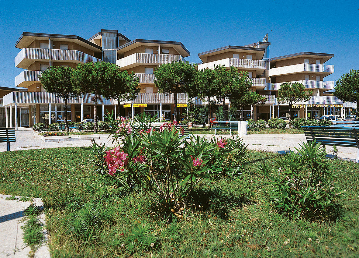 téměř identické apartmánové domy (Oasi, Simma, City, Reno, Prisma, …) v těsném okolí Piazza Po a City