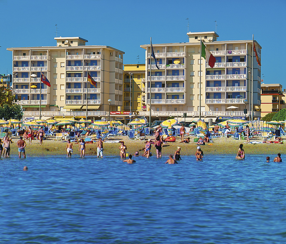 • dokonalá poloha v centrální části Bibione Spiaggia – u promenády, obchodní zóny, barů a restaurací a současně jen přes náměstí od pláže