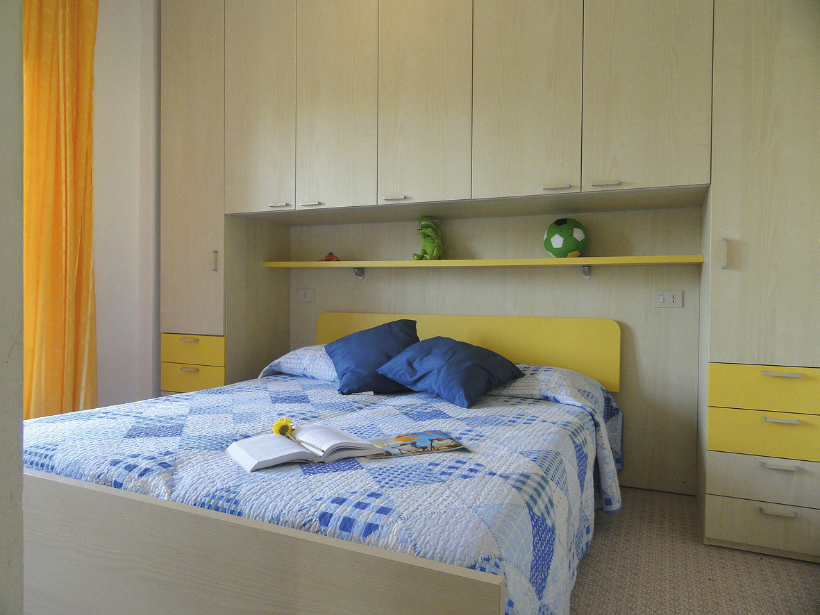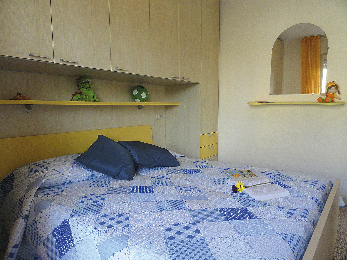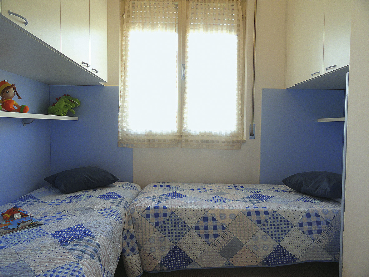trilo 5 - 40 m² 1 ložnice s manželskou postelí, 1 ložnice se 2 samostatnými lůžky, obývací pokoj s kuchyňským koutem a rozkládacím gaučem pro 1 osobu, sociální zařízení se sprchou, balkon