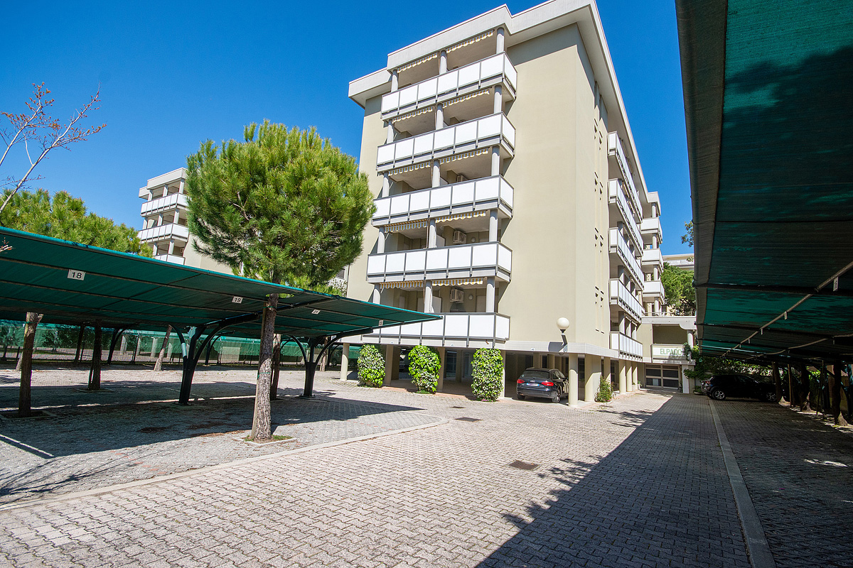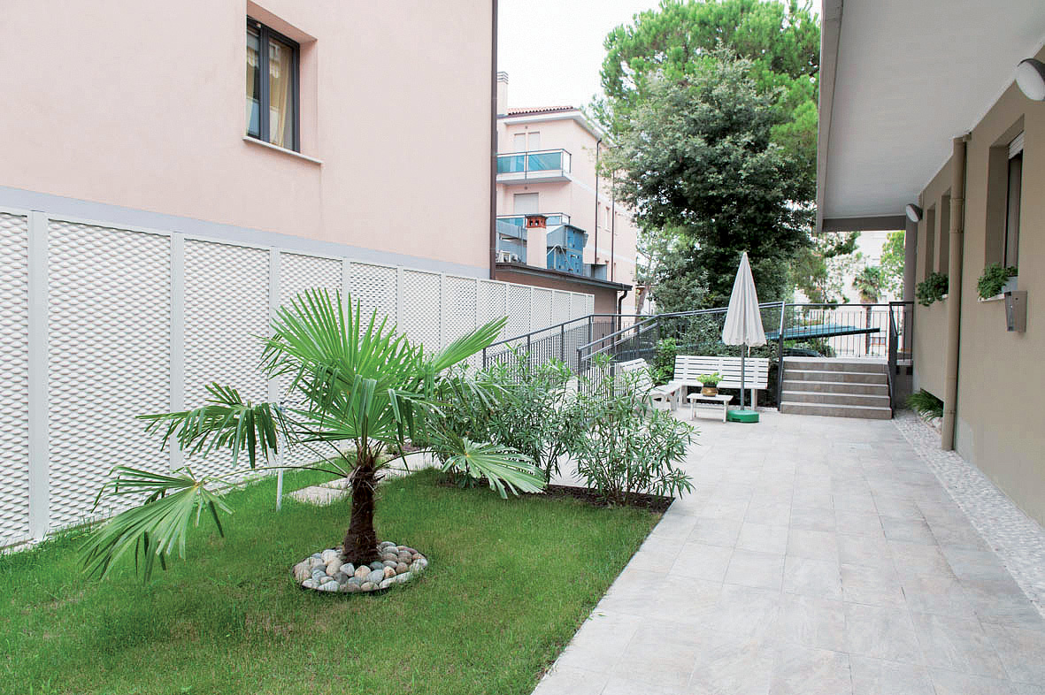 plážový servis sestává ze slunečníku, lehátka a plážového křesla; nabízen je na převážné většině pláží v Bibione - -