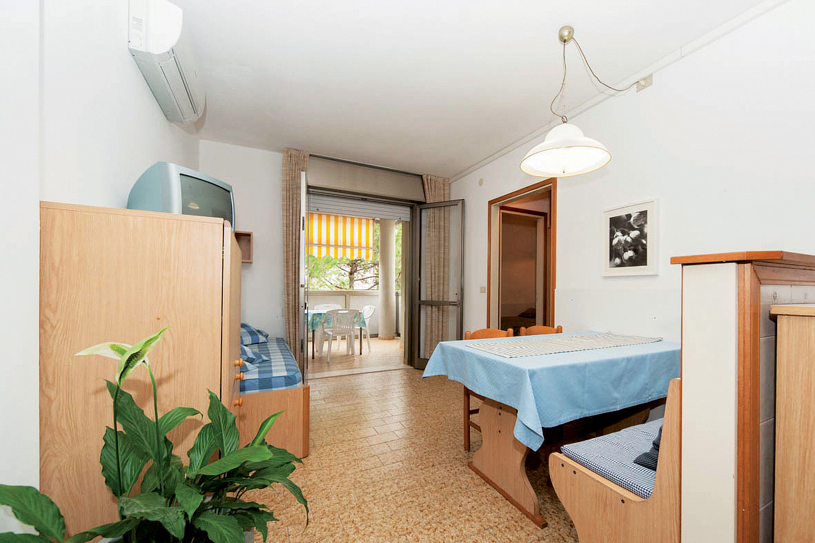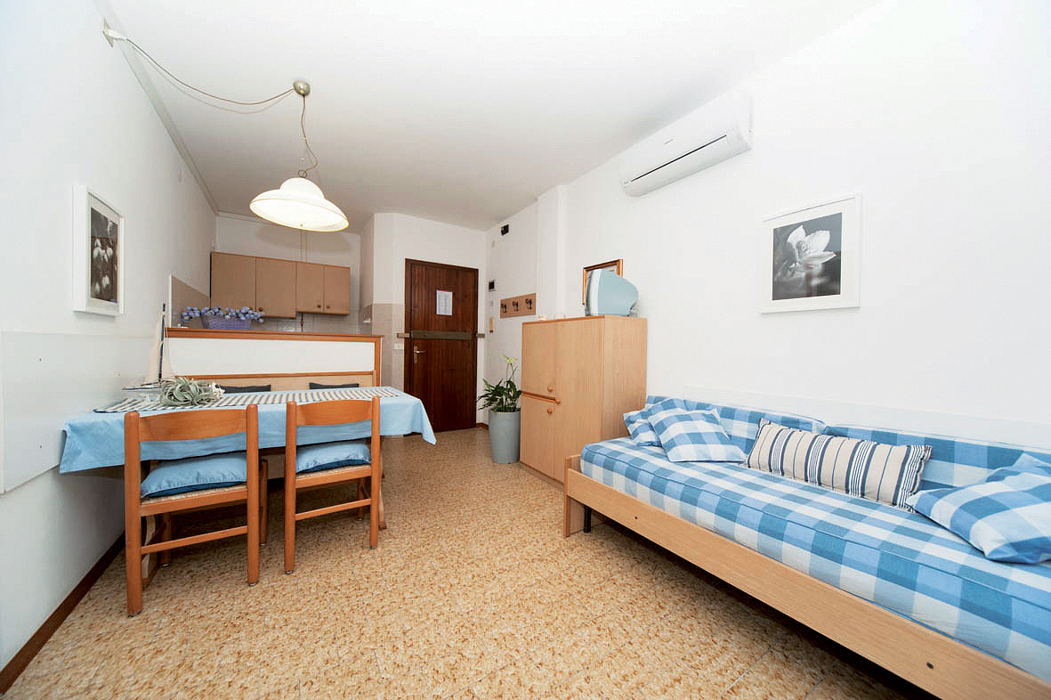 30 m² - 1 ložnice s manželskou postelí a 1 samostatným lůžkem, obývací pokoj s kuchyňským koutem a gaučem pro 1 osobu, sociální zařízení se sprchou, balkon