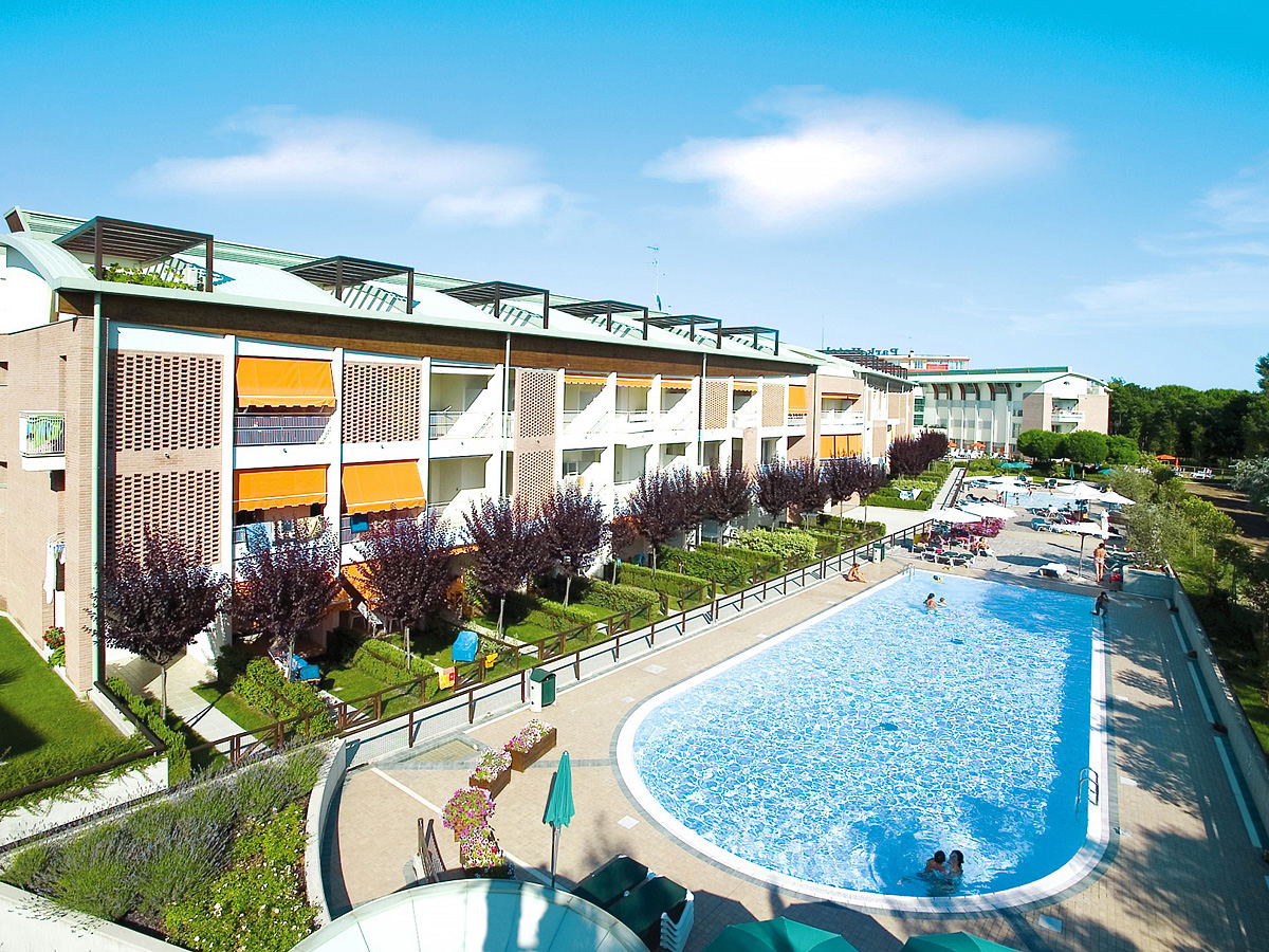 bazén, dětský bazének, sluneční terasa s lehátky; na pláži též plážový servis (1 slunečník a 2 lehátka)