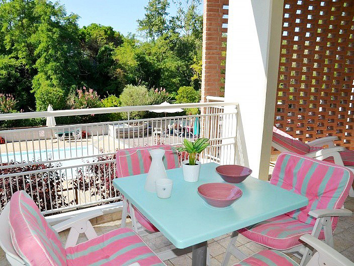 35 m² - 1 ložnice s manželskou postelí a 1 samostatným lůžkem, obývací pokoj s kuchyňským koutem a rozkládacím gaučem pro 2 osoby, sociální zařízení se sprchovým boxem, balkon; typ bilo 5+ s garážovým stáním; typ bilo 5Z v přízemí s předzahrádkou a krytou terasou směrem na bazén; typ bilo 5Z+ stejný jako typ bilo 5Z, navíc garážové stání