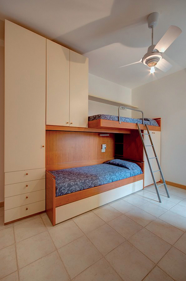 45 až 50 m² - 1 ložnice s manželskou postelí, 1 ložnice se 2 samostatnými lůžky či palandou, obývací pokoj s kuchyňským koutem a gaučem pro 2 osoby, sociální zařízení se sprchou, terasa s předzahrádkou či balkon; některé apartmány jsou dvoupodlažní, kdy v 1. patře je obývací pokoj s kuchyňským koutem a rozkládacím gaučem pro 2 osoby, sociální zařízení se sprchou; ve 2. patře pak obě ložnice a sociální zařízení se sprchou, balkon