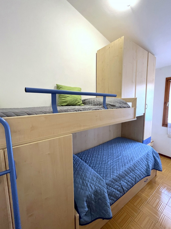 quadrilo 7 - 55 m² - přízemí: 1 malá ložnice s 1 samostatným lůžkem, obývací pokoj s rozkládacím gaučem typu "šuplík" pro 2 osoby, samostatný kuchyňský kout či kuchyňský kout v rámci obývacího pokoje, terasa a předzahrádka; 1. patro: 1 ložnice s manželskou postelí, 1 ložnice se 2 samostatnými lůžky, sociální zařízení se sprchou