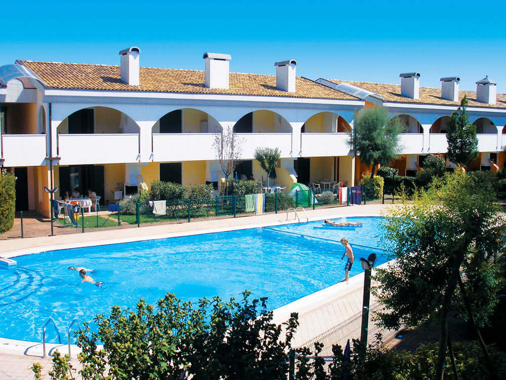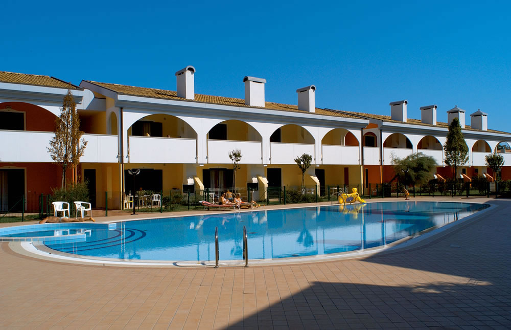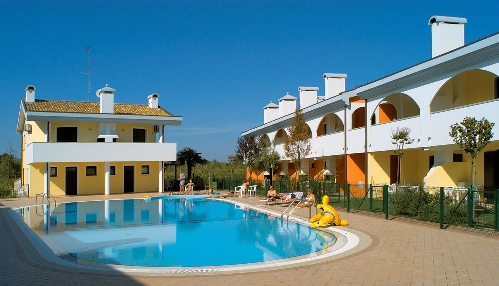 menší areál s bazénem a příjemným whirlpoolem obklopený řadovými vilkami