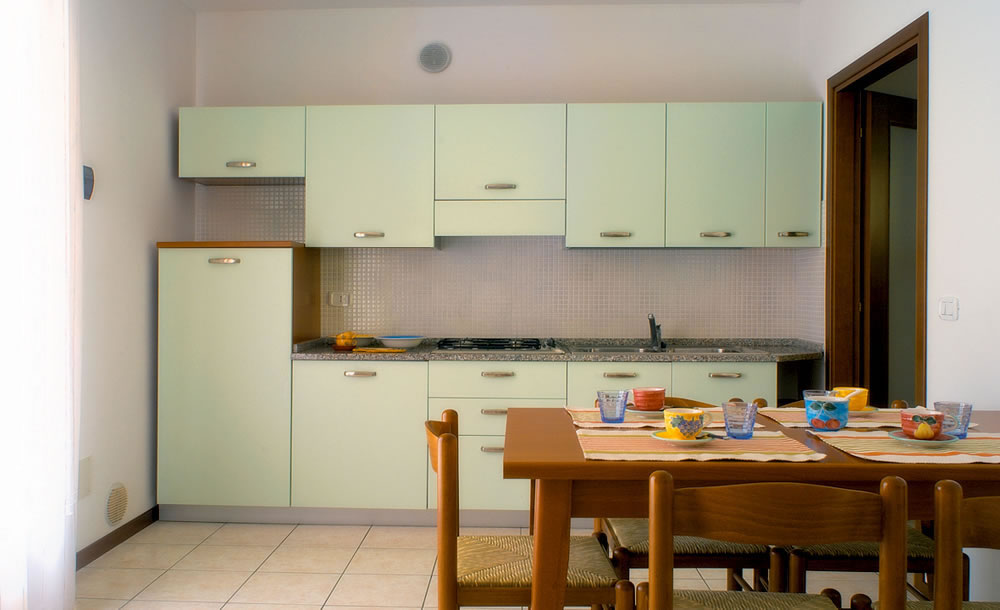 35 m² - 1 ložnice s manželskou postelí a 1 samostatným lůžkem, obývací pokoj s kuchyňským koutem a rozkládacím gaučem pro 2 osoby, sociální zařízení se sprchou, balkon; typ bilo 5Z / bilo 5Z* / bilo 5Z** se nachází v přízemí a má terásku s předzahrádkou