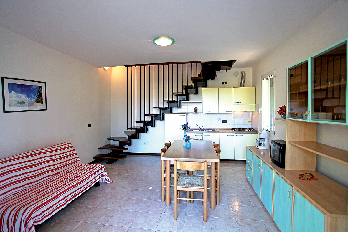 trilo 7 - 60 m² - 1 ložnice s manželskou postelí a 1 samostatným lůžkem, 1 ložnice se 2 samostatnými lůžky, obývací pokoj s kuchyňským koutem a rozkládacím gaučem pro 2 osoby, sociální zařízení se sprchou, balkon či terasa či předzahrádka zpravidla s terasou (v ceníku označení trilo 7Z)