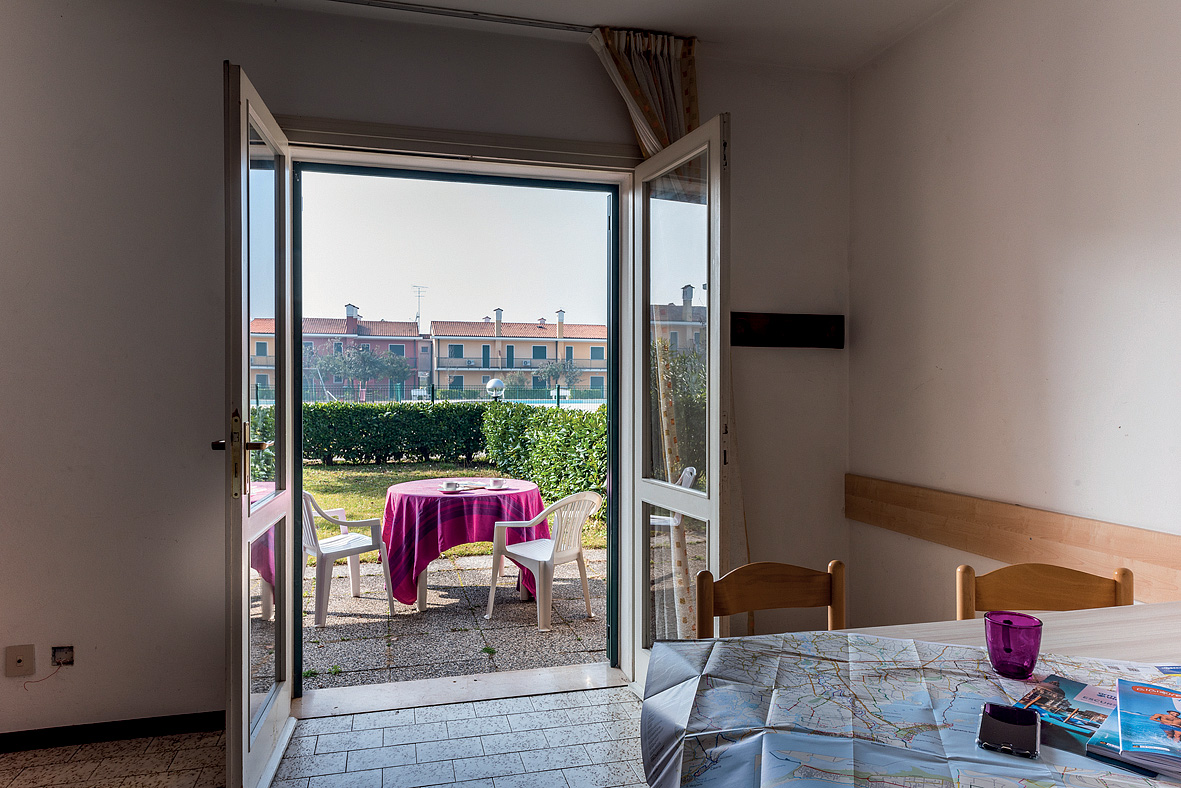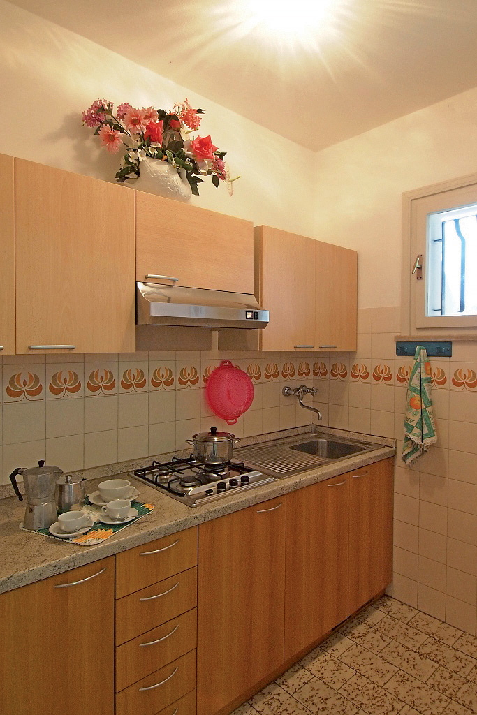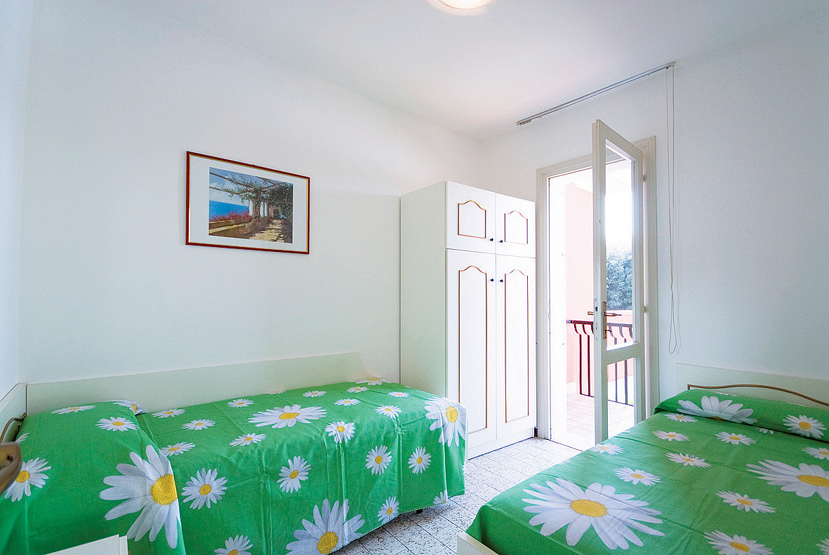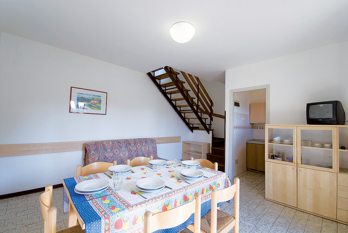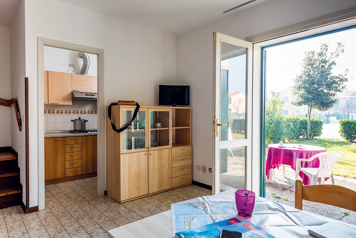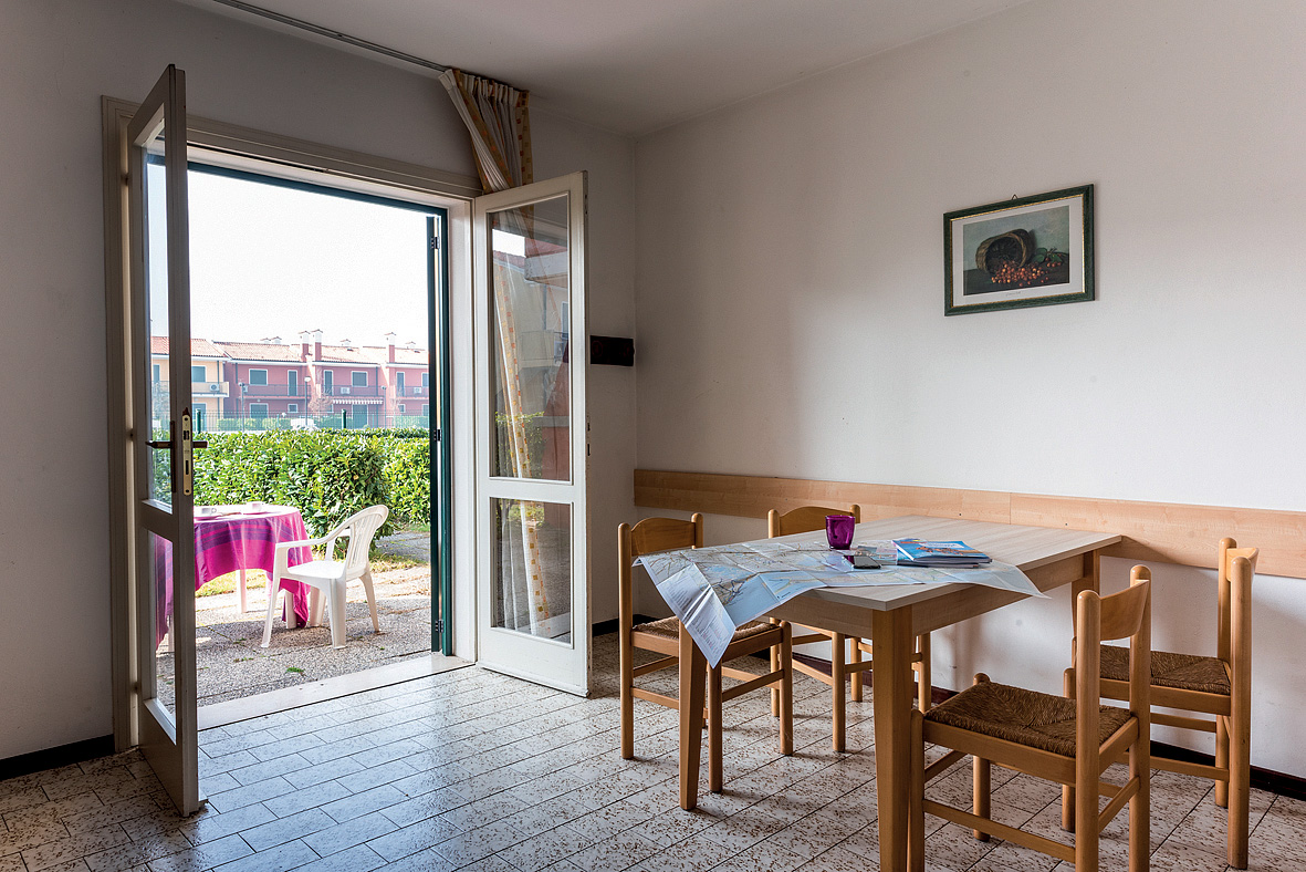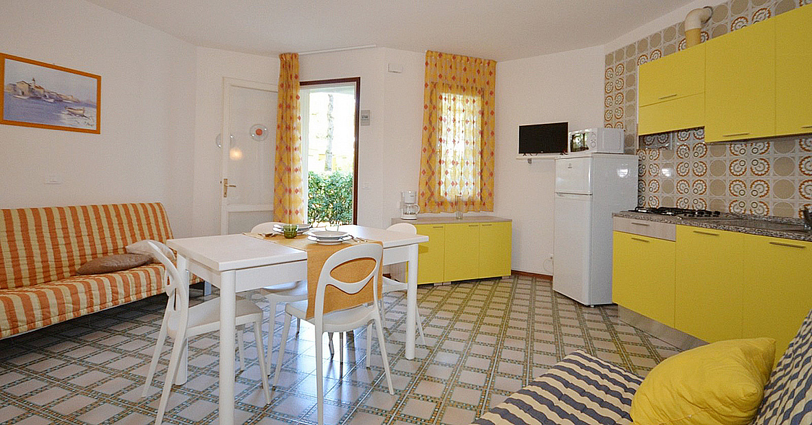 25 m² - obývací pokoj s kuchyňským koutem a 2 rozkládacími gauči (možnost typ "šuplík") pro 2 osoby či 1 rozkládacím gaučem a palanda, sociální zařízení se sprchou, předzahrádka; apartmány jsou výhradně ve villaggio San Siro