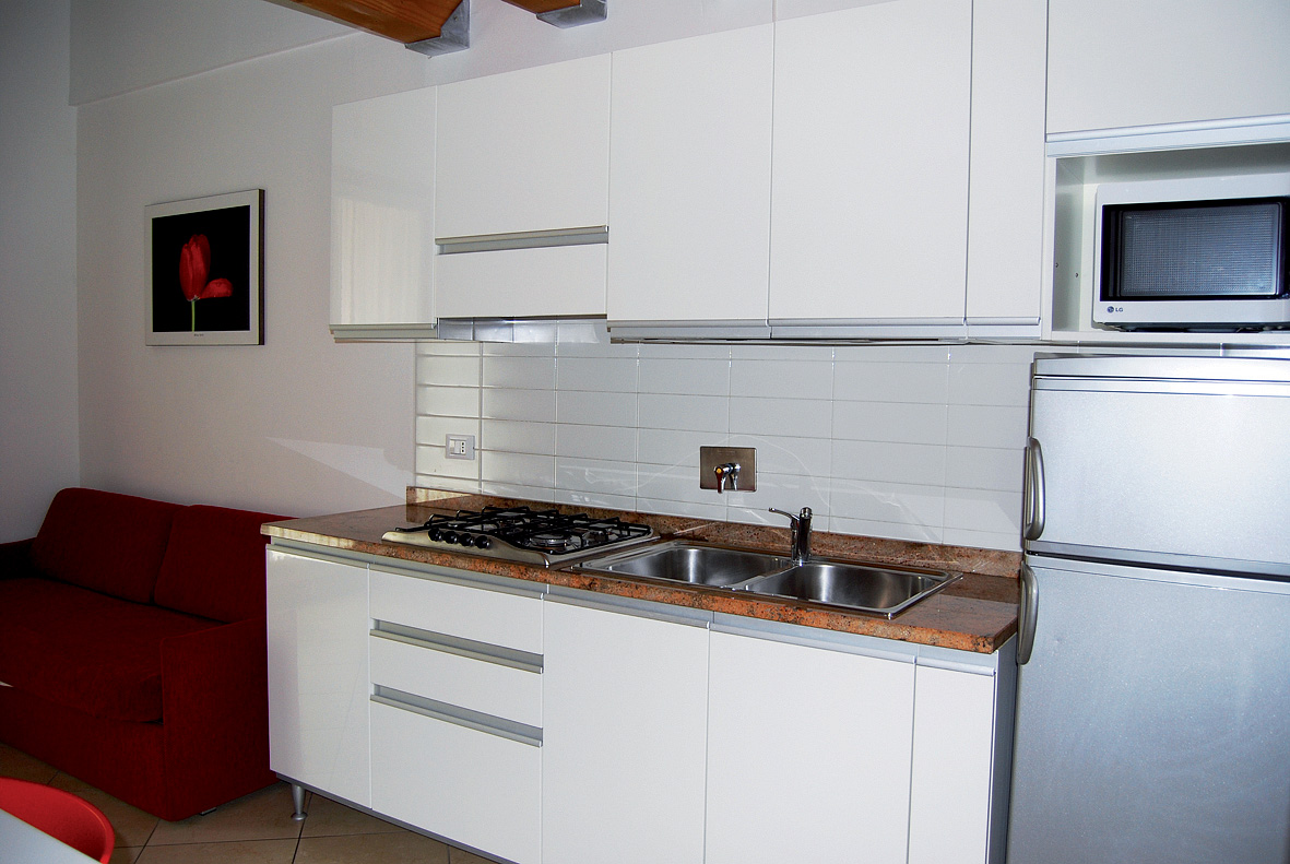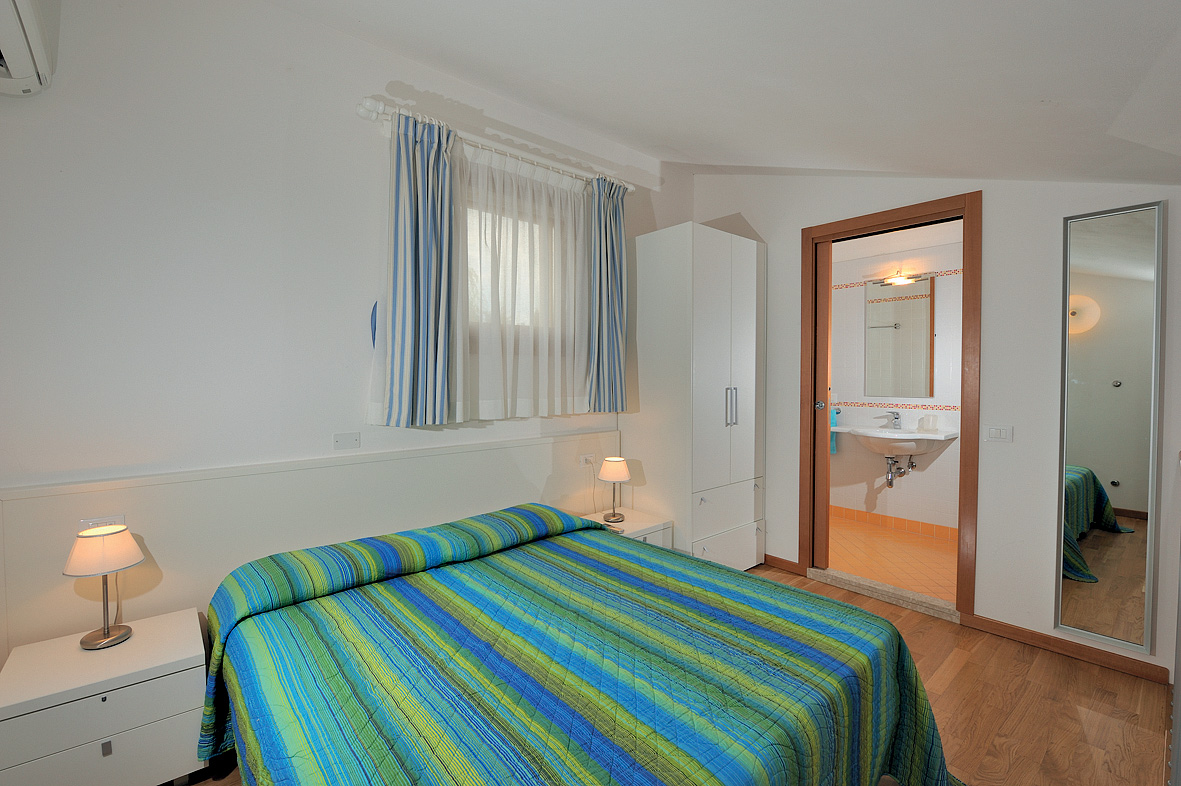 30 až 35 m² - 1 ložnice s manželskou postelí a případně 1 samostatným lůžkem, obývací pokoj s kuchyňským koutem a rozkládacím gaučem pro 1 či 2 osoby, sociální zařízení se sprchou, terasa s předzahrádkou