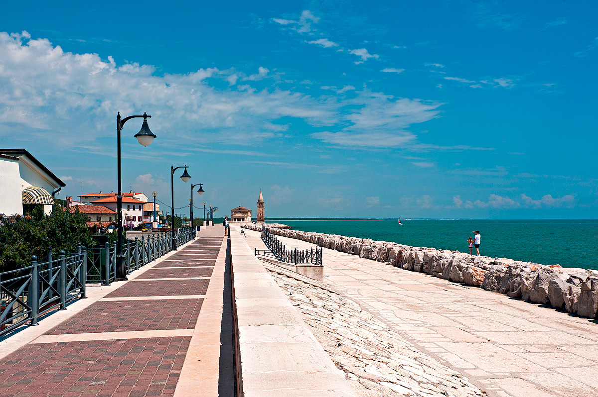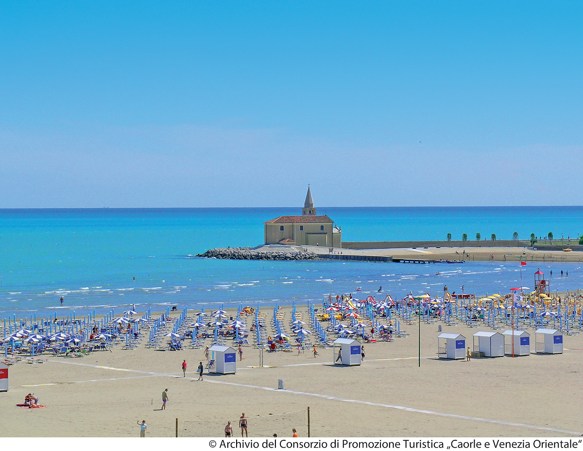 Ale pojďme již k tomu pro většinu z Vás podstatnějšímu, tedy k plážím, infrastruktuře a ubytování. Místní neobyčejně krásná pláž je tvořena jemným zlatavým pískem, pozvolna se sklání k mořské hladině a ve večerních hodinách neodolatelně láká k pozorování romantických západů slunce. Zcela uchvacující je ale i rušné „lungomare“, pobřežní promenáda zdobená sochami umělců z mnoha zemí, kterou si prostě nemůže nechat ujít žádný z místních rekreantů. Nadmíru pestrá je ale i předkládaná paleta zábavy a sportu, ze které zmiňme alespoň opravdu vydařený vodní park Aquafollie. Přibližně 10 kilometrů dlouhé letovisko se rozděluje do několika, místní autobusovou dopravou vzájemně propojených částí – Ponente, Levante (centrum Caorle), Porto S. Margherita, nově vybudovaná část Altanea a Duna Verde.