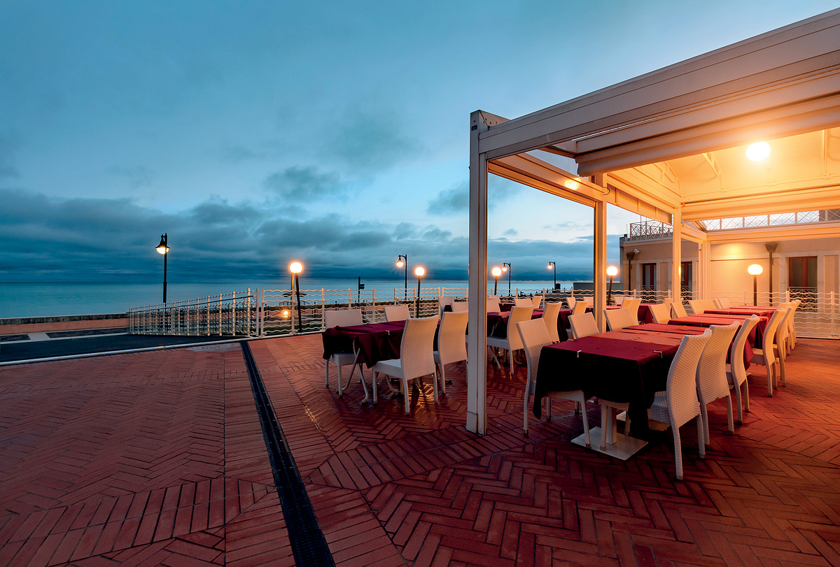 Na soukromých plážích si lze zaplatit slunečníky a lehátka, k dispozici jsou zde bary, sociální zařízení, sprchy a u některých i restaurace, sportovní zázemí (hřiště na míčové sporty, lodičky, šlapadla atd.), dětská hřiště, animační programy, plavčíci apod. Stabilita některých pláží a klidná hladina moře je zabezpečena také betonovými moly vybíhajícími několik desítek metrů do moře.