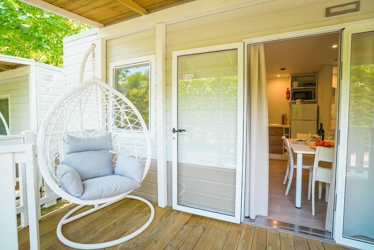 • moderně vybavené a zařízené mobilhomy s částečně zastřešenou dřevěnou terasou ideální k posezení i k oblíbenému grilování