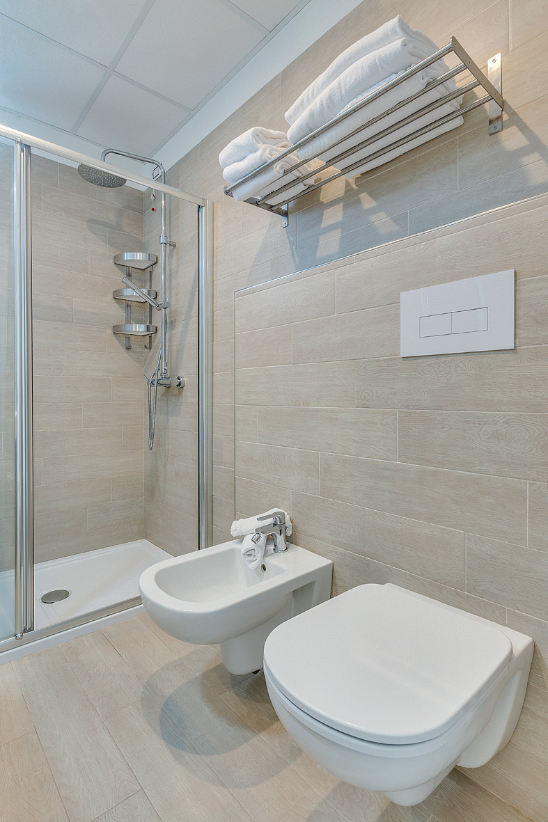 P2 balkon classic - 12 m² – pokoj s manželskou postelí, sociální zařízení se sprchou, velmi malý balkon