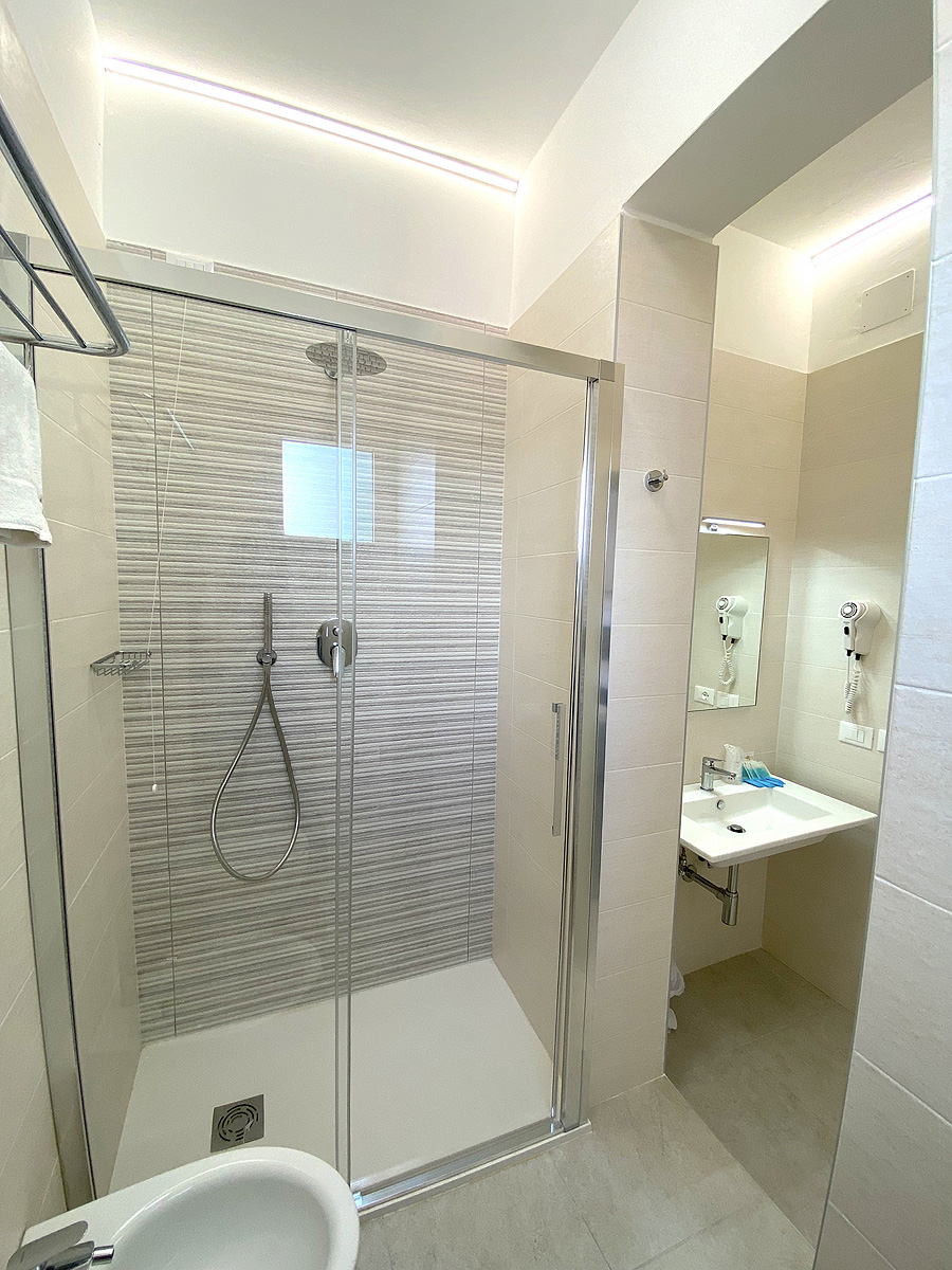12 m² - pokoj s manželskou postelí a francouzským oknem, sociální zařízení se sprchou