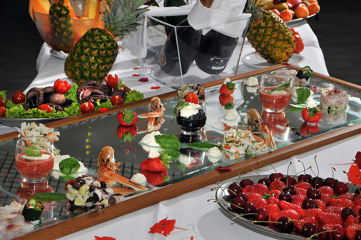 tříchodové menu s výběrem z 2 variant, bohatý salátový a zeleninový bufet, dezerty; nápoje za poplatek