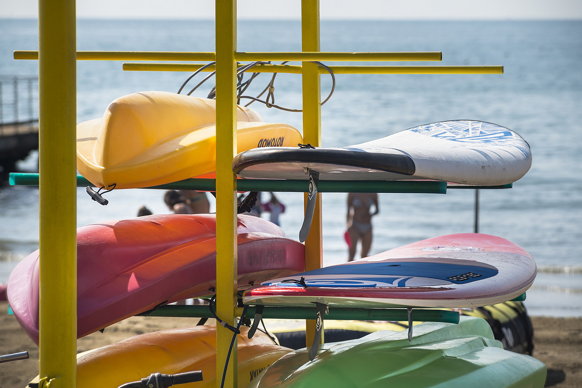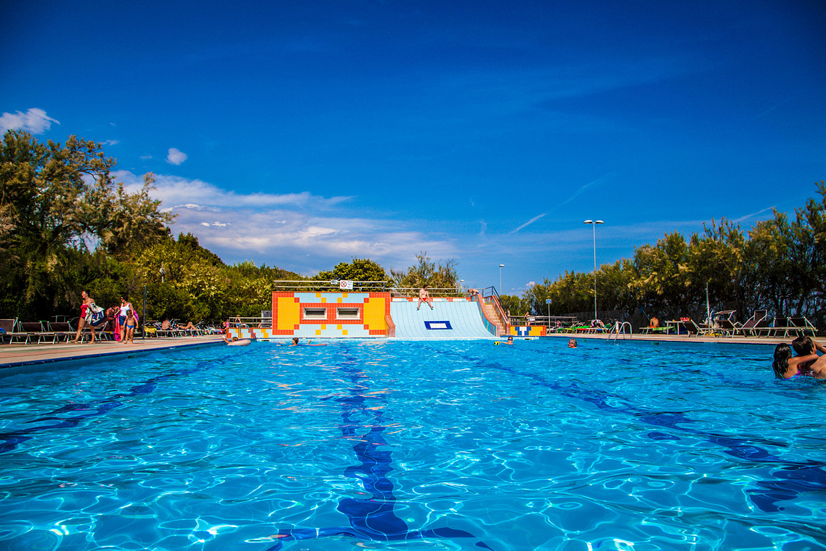 4 venkovní bazény se skluzavkami a vířivkou (v nízké sezóně 1 vyhřívaný), pro děti Spray Park s fontánami a vodními hrami, fitness centrum, lehátka a slunečníky (na vyžádání)*, tenisové kurty, basketbalové, fotbalové a volejbalové hřiště, petanque, minigolf, stolní tenis, půjčovna kol*, šlapadel*, loděk*, kajaků* i windsurfů*, dětský koutek