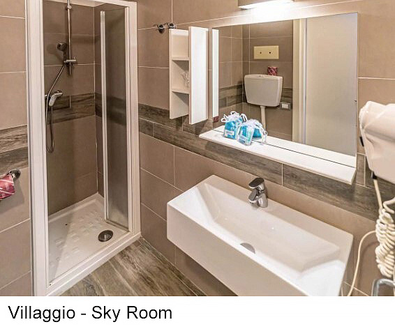recepce, bar, restaurace, 2 pizzerie, snack bar, jogurteria a zmrzlinárna, dětský koutek, dětský klub a animační programy (cca od konce května do začátku září), vyhrazené parkoviště, prádelna*, myčka aut*, minimarket, obchod, divadlo, herny, diskotéka, lékařská pohotovost (v hlavní sezóně), kadeřnictví*, bankomat, místní motorový vláček, wi-fi připojení k internetu*