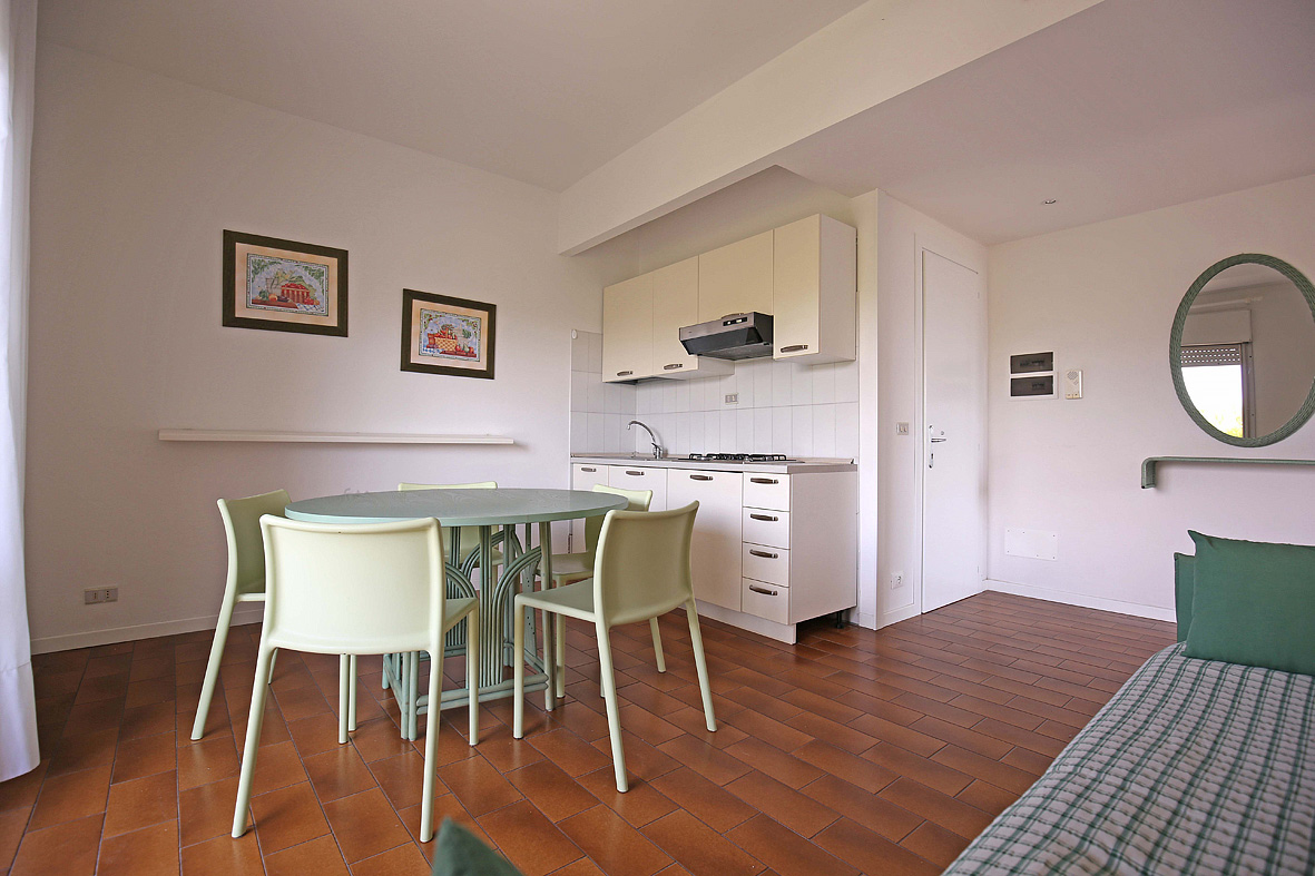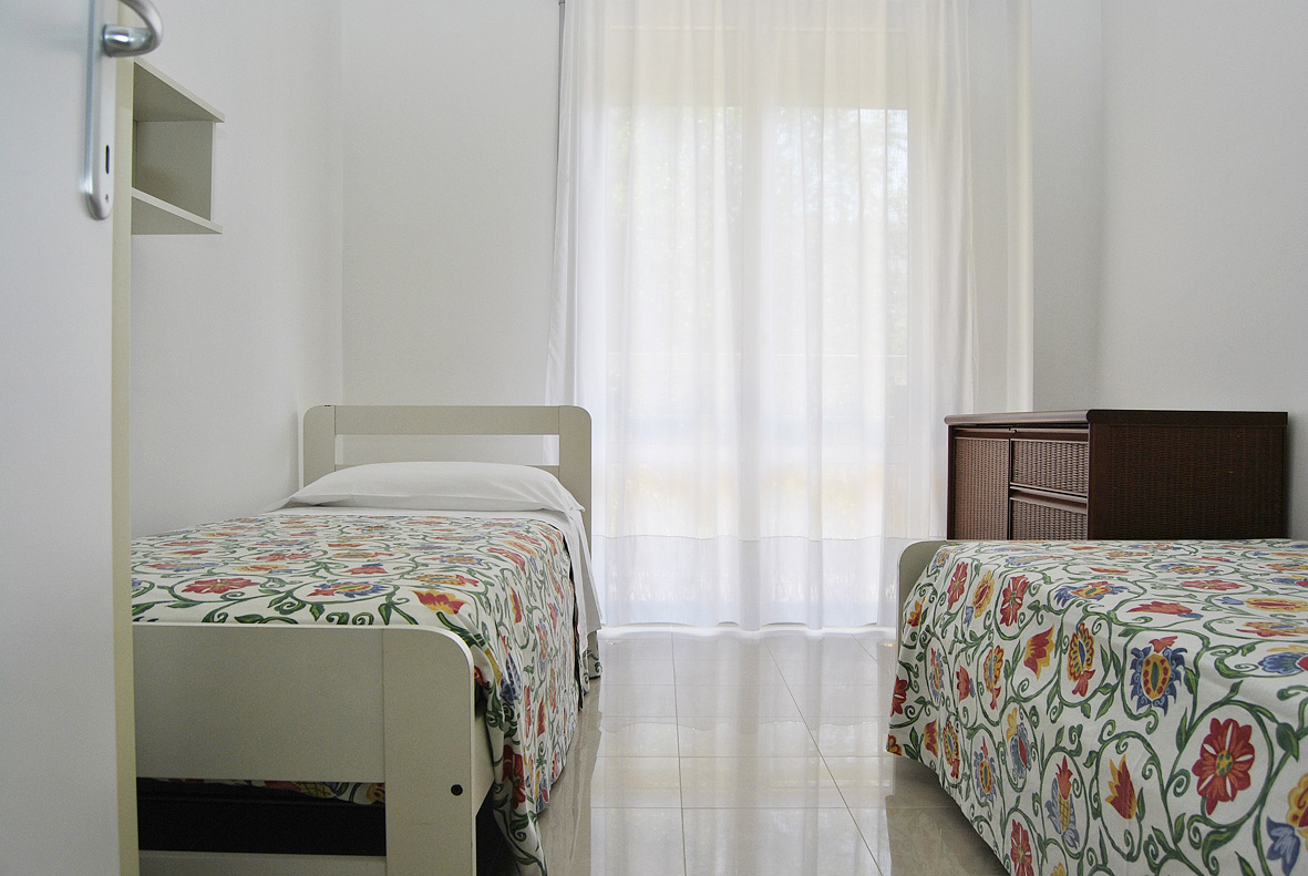 malá residence s vynikající polohou - u hlavní „tepny“ Caorle – u živé / večer bezpečné pěší zóny se supermarketem, pekárnou i barem se skvělými snídaněmi