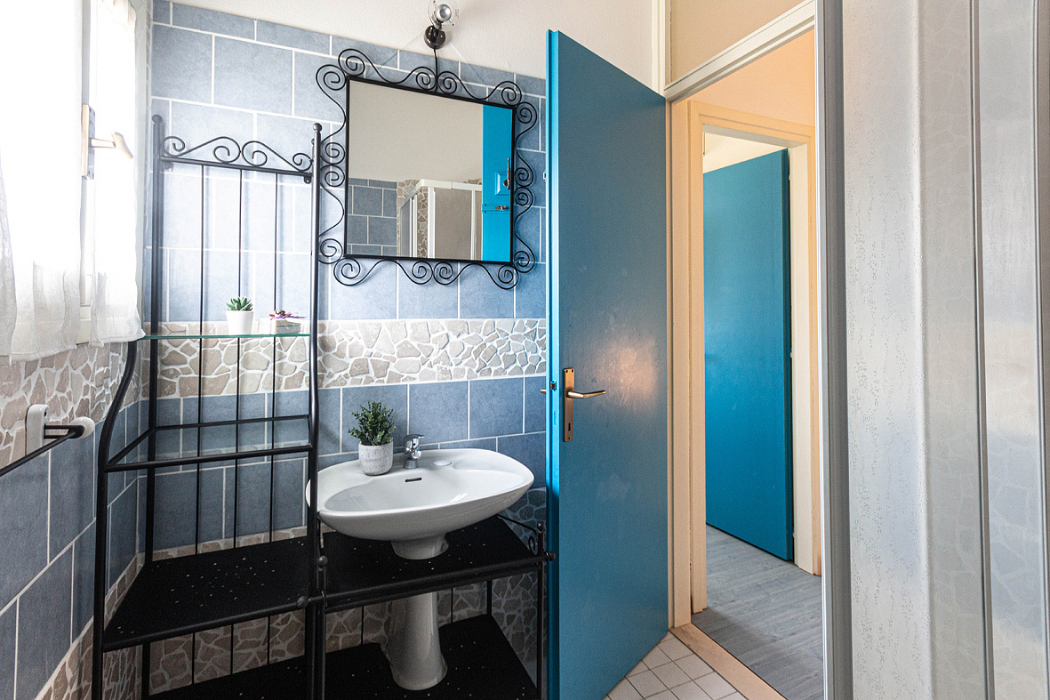 47 m² - přízemí: obývací pokoj s kuchyňským koutem a rozkládacím gaučem pro 2 osoby, terasa či předzahrádka; 1. patro: 1 ložnice s manželskou postelí, 1 ložnice se 2 samostatnými lůžky či palandou, sociální zařízení se sprchou, menší balkon