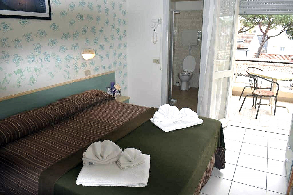 pokoj s manželskou postelí či 2 samostatnými lůžky, 3. a 4. lůžko formou přistýlky či palandy, sociální zařízení se sprchou, balkon