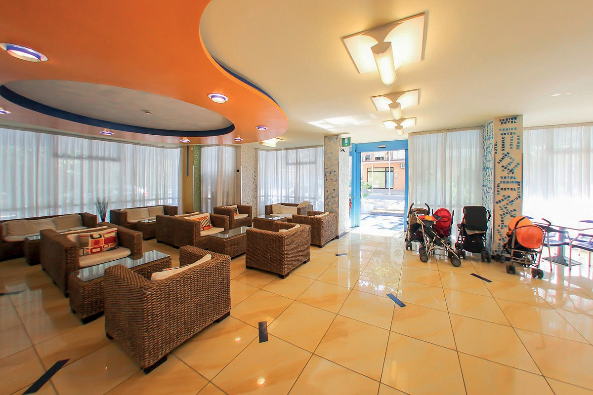 recepce / menší lobby s TV / bar / wi-fi připojení k internetu, restaurace, společenská místnost s dětským koutkem, sluneční terasa s posezením, výtah, úschovna jízdních kol *, vyhrazené parkoviště* (počet míst omezen, nelze rezervovat předem)