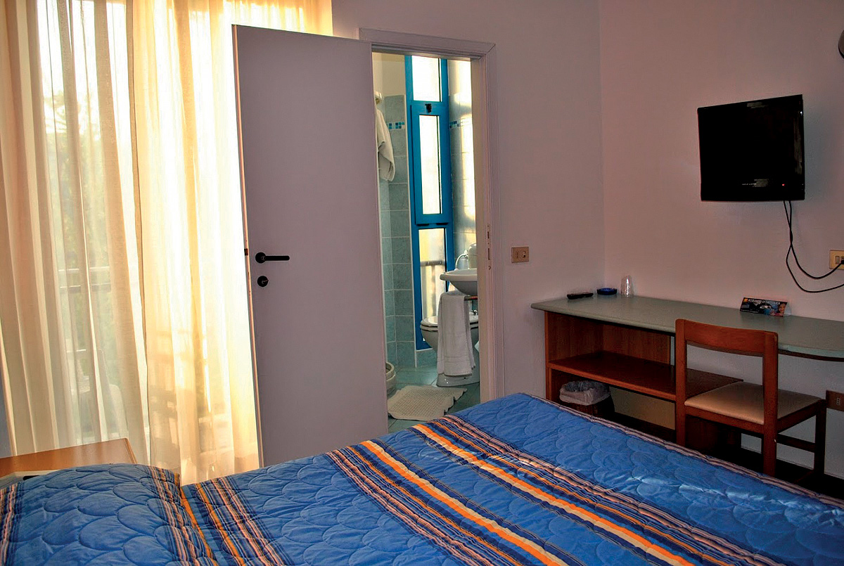 pokoj s manželskou postelí či 2 samostatnými lůžky, sociální zařízení se sprchou, malý balkon či francouzské okno; 3. lůžko pevné či formou přistýlky