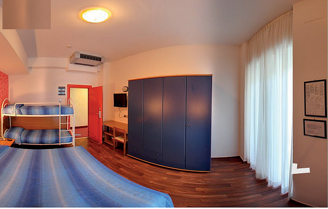 pokoj s manželskou postelí či 2 samostatnými lůžky, sociální zařízení se sprchou, malý balkon či francouzské okno; 3. a 4. lůžko formou palandy či atypického gauče rozkládacího na palandu pro děti do nedovršených 15 let
