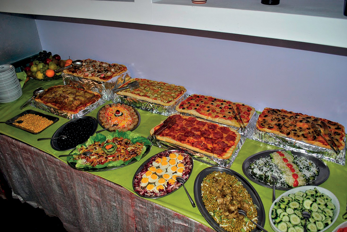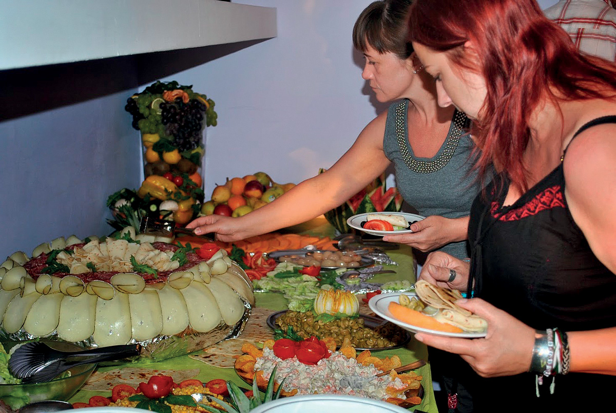 formou bufetu či servírované s výběrem z menu; nápoje za poplatek